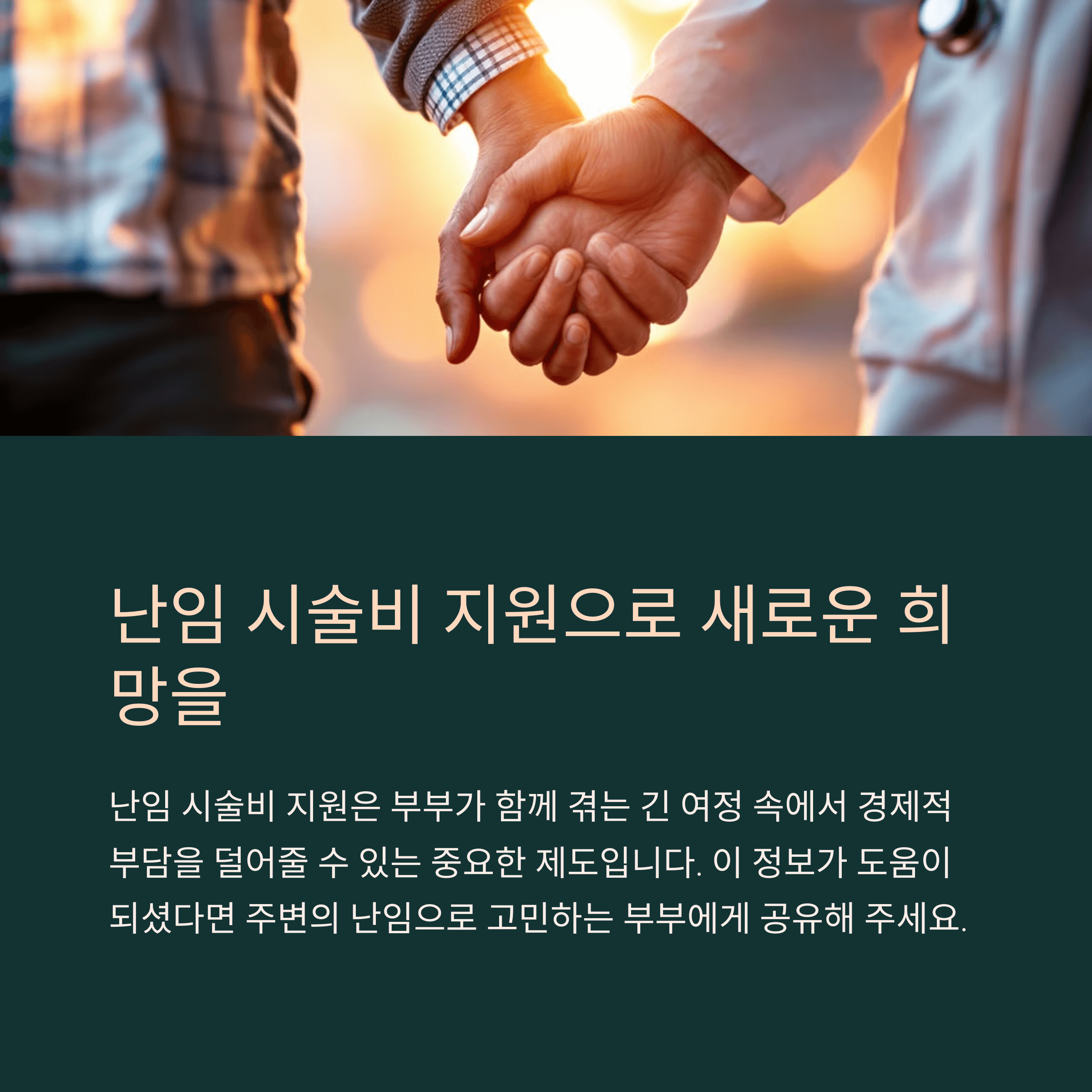 난임 시술비 지원은 부부가 함께 겪는 긴 여정 속에서 경제적 부담을 덜어줄 수 있는 중요한 제도입니다. 본 안내를 통해 필요한 절차를 이해하고, 놓치는 부분 없이 지원받으시길 바랍니다.