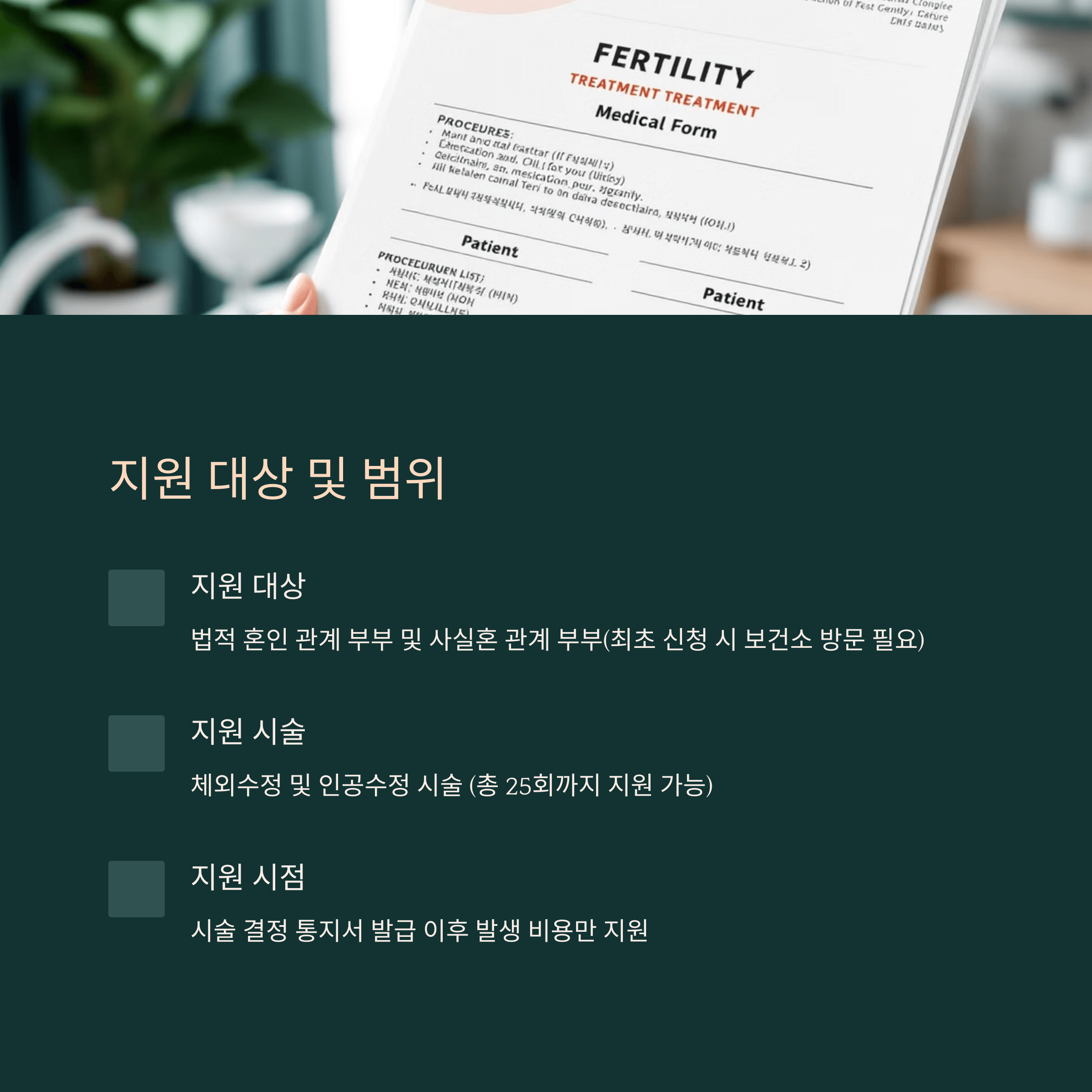 총 25회까지 지원 가능하며, 횟수는 시술 유형에 따라 다르게 적용될 수 있습니다.