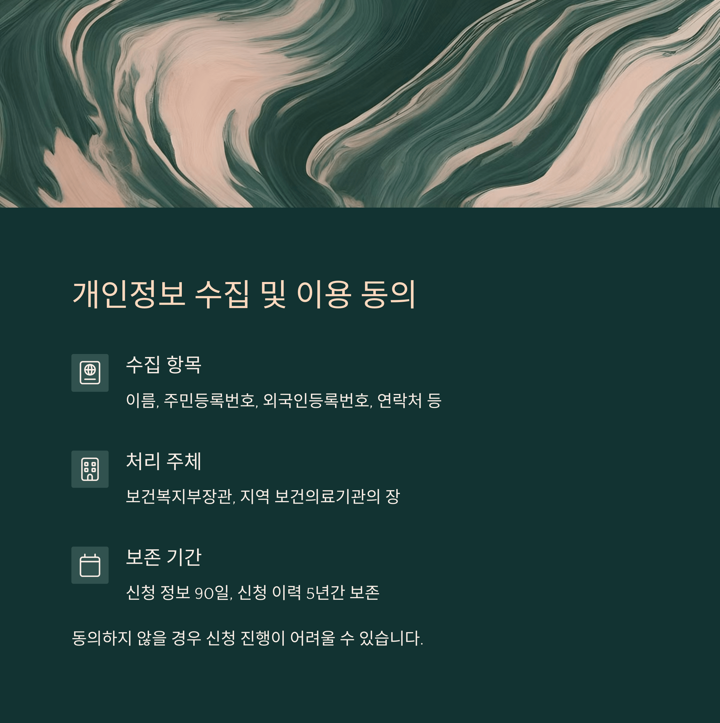 이 정보는 의료비 지원을 위한 행정 처리에 반드시 필요하며, 동의하지 않을 경우 신청 진행이 어렵습니다.