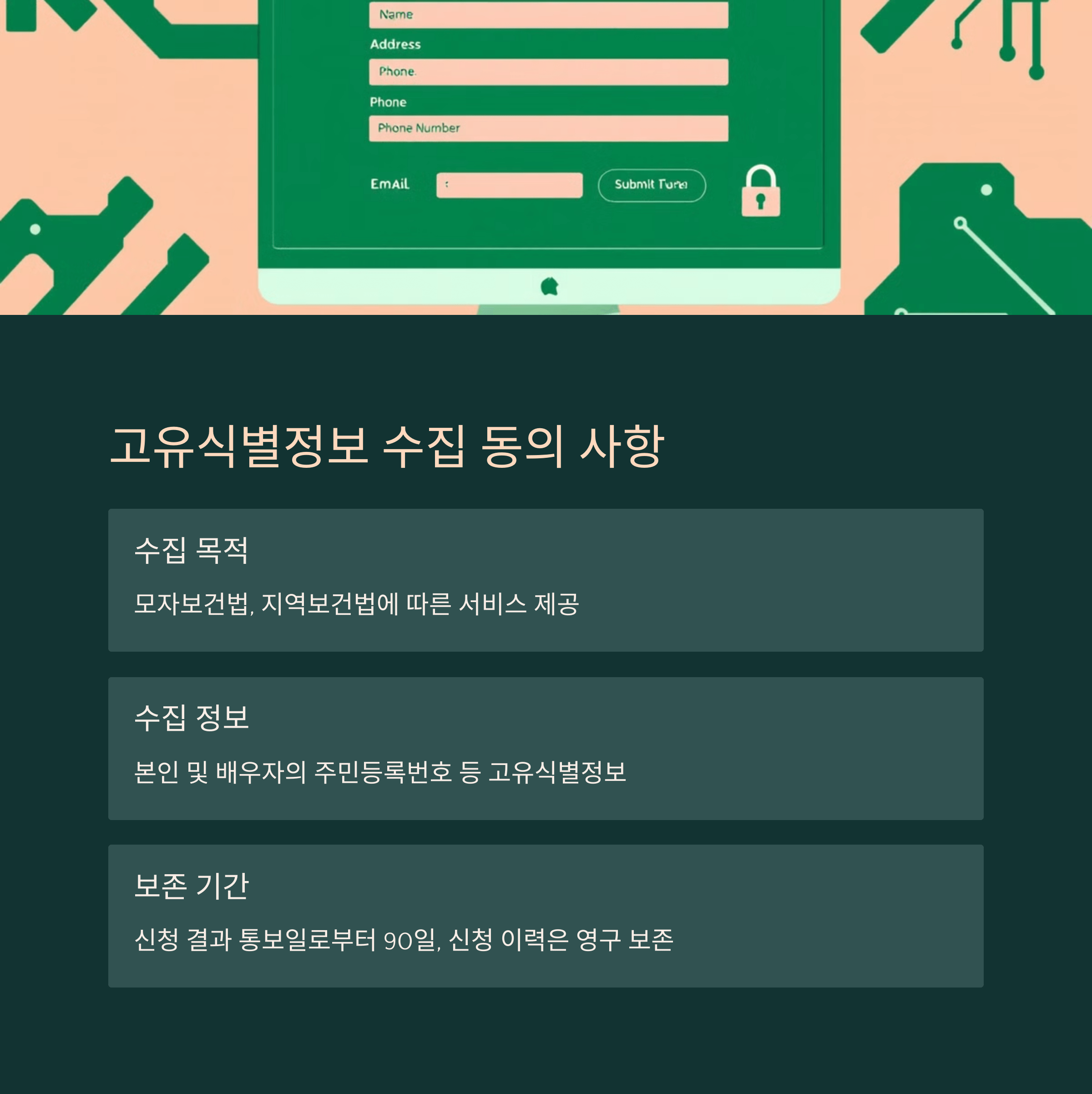 - 수집 목적: 모자보건법, 지역보건법에 따른 서비스 제공