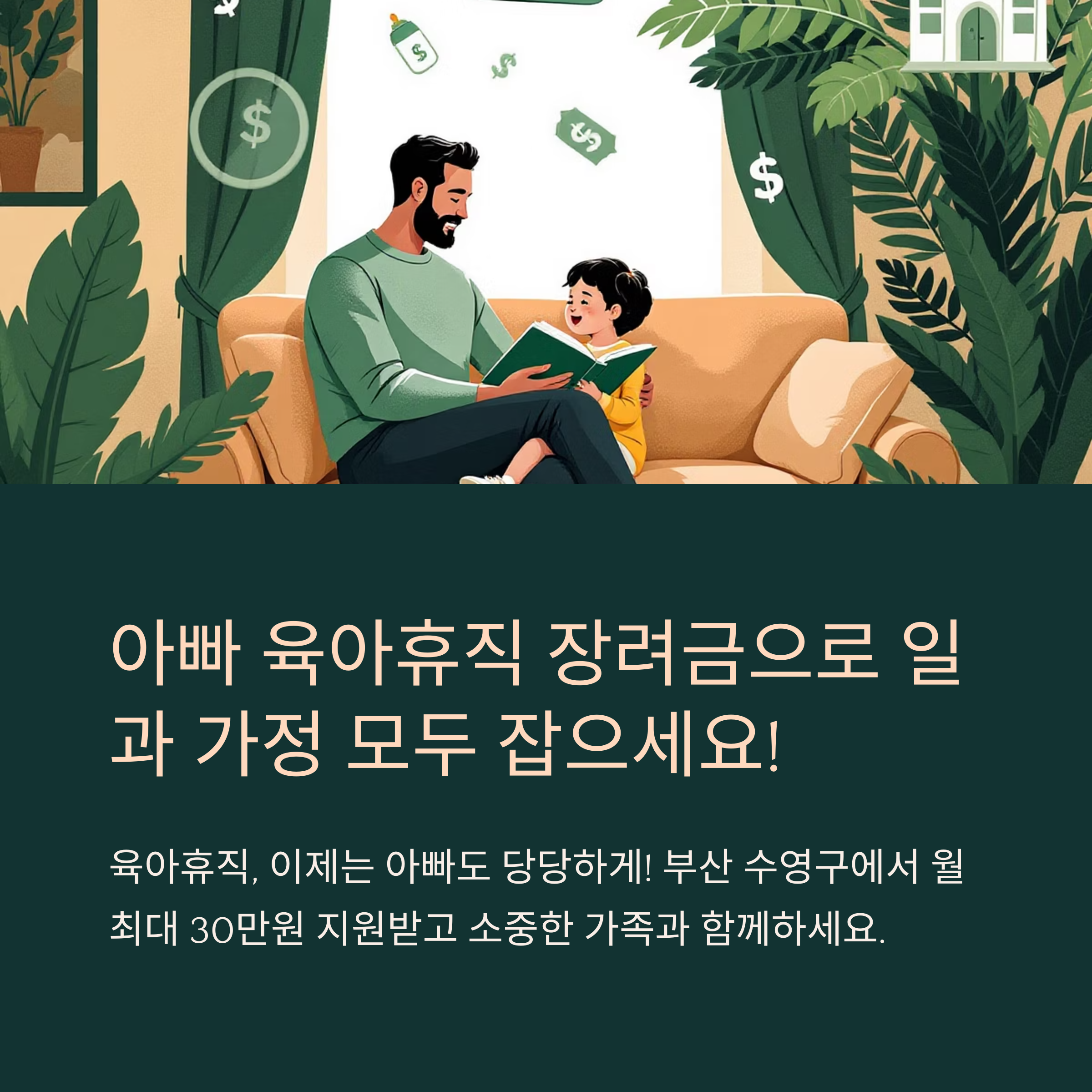 월 최대 30만원! 부산 수영구의 '아빠 육아휴직 장려금'으로 가정과 일, 둘 다 잡아보세요.