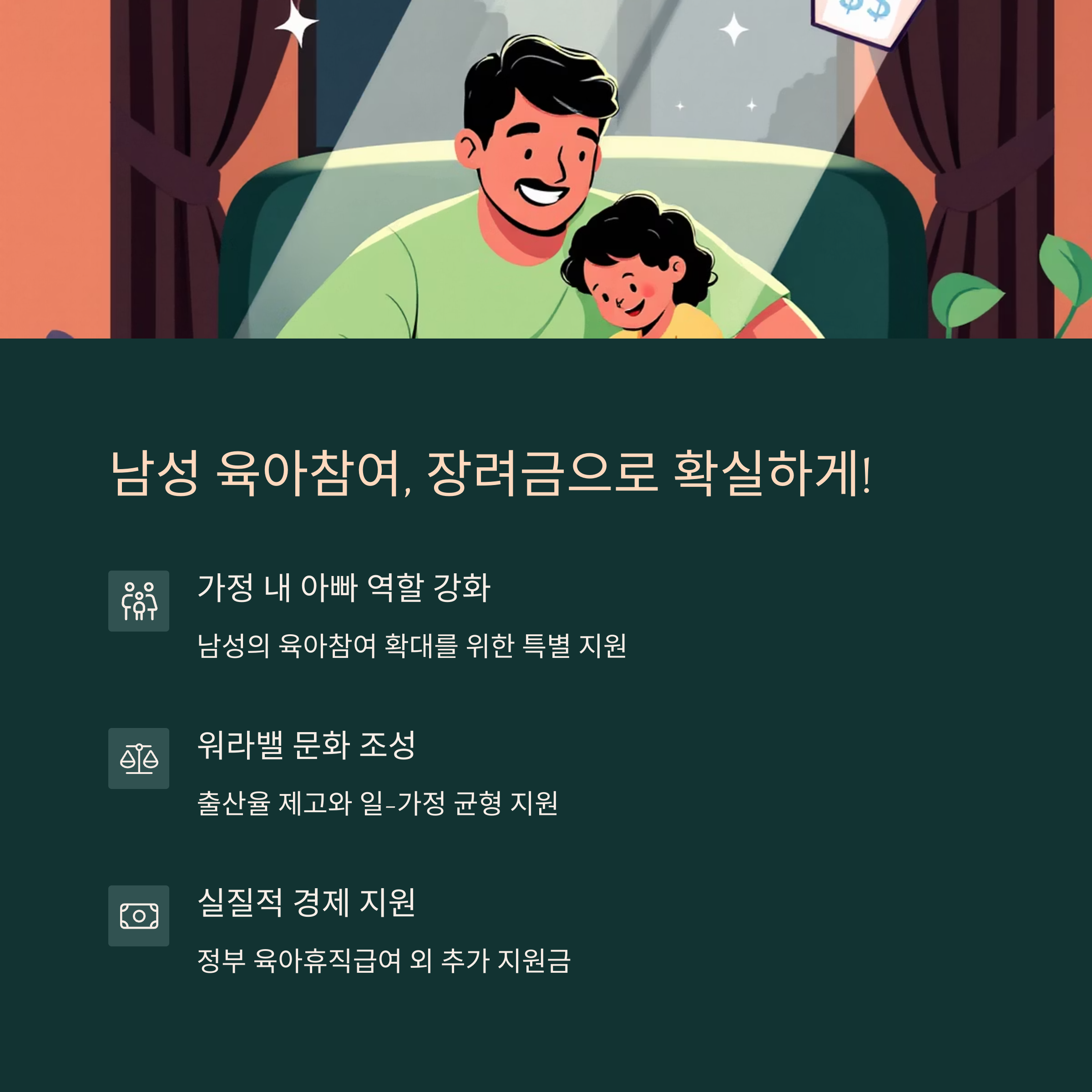 정부 육아휴직급여 외에 추가로 지원되는 이 장려금은 아빠들에게 실질적인 도움이 됩니다.