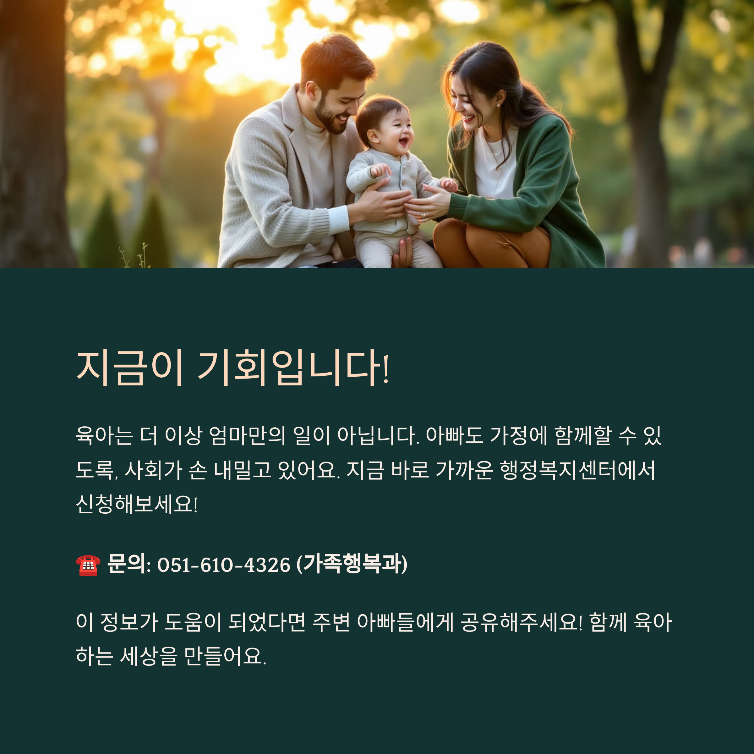 부산 수영구의 이 제도는 육아에 대한 부담을 줄이고, 가족 간의 행복한 시간을 보장해줍니다.