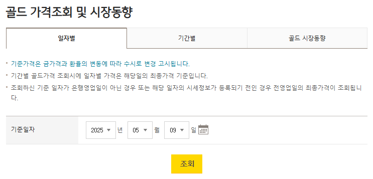 - 특징: 일별·시간별 시세 변동표 제공, 금 통장 등 투자상품 연계 가능