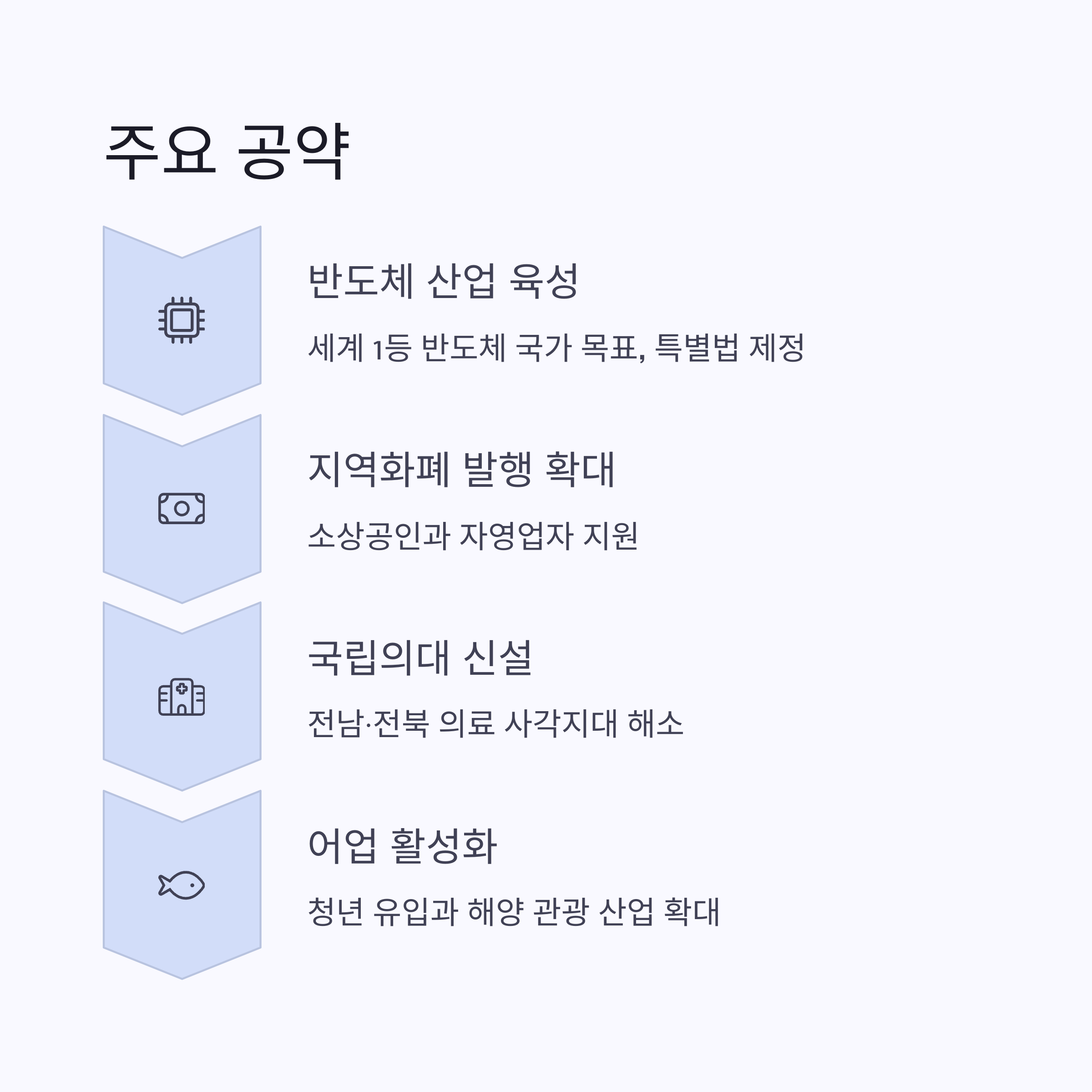 - 전남·전북 국립의대 신설: 의료 사각지대 해소를 위한 국립의대 설립 공약.