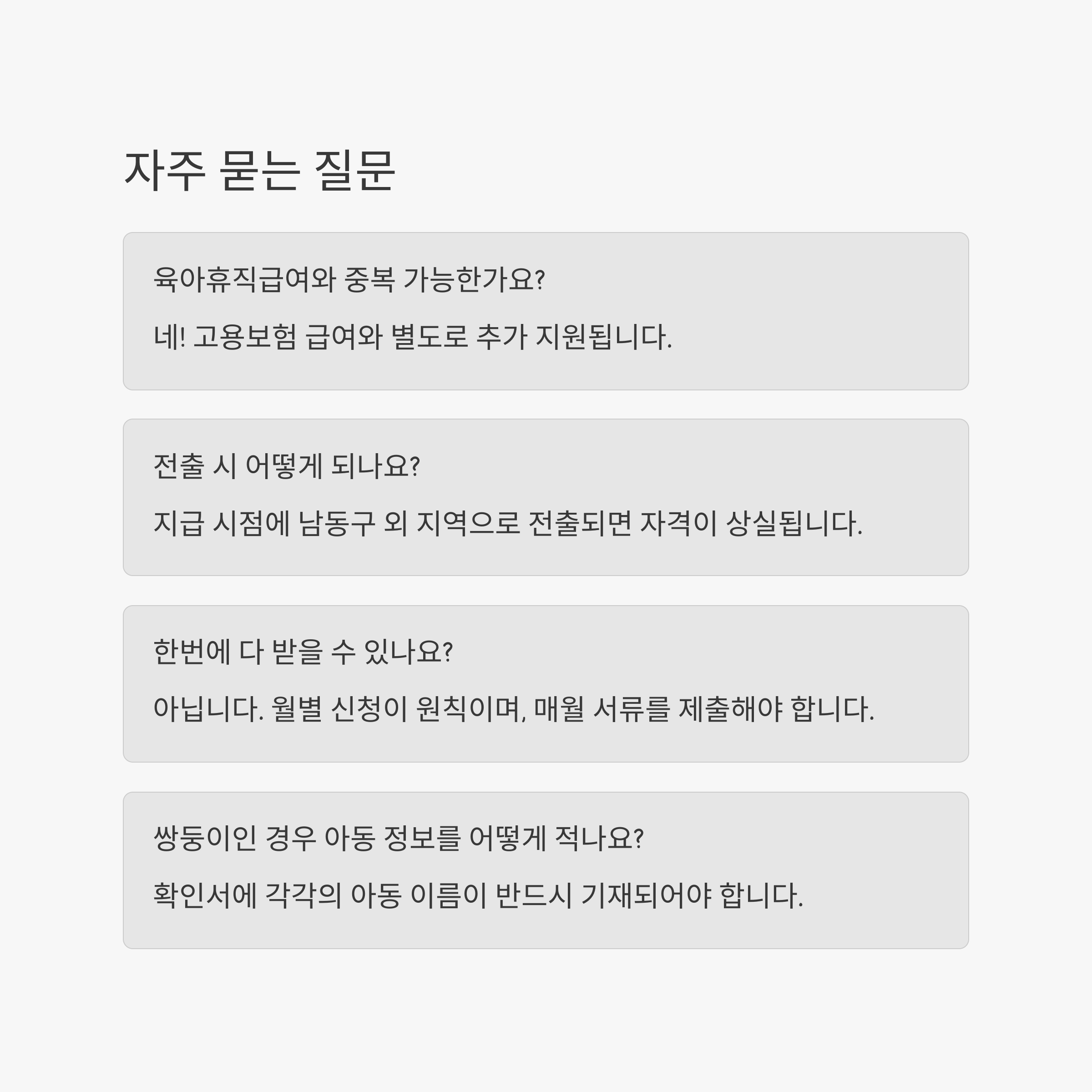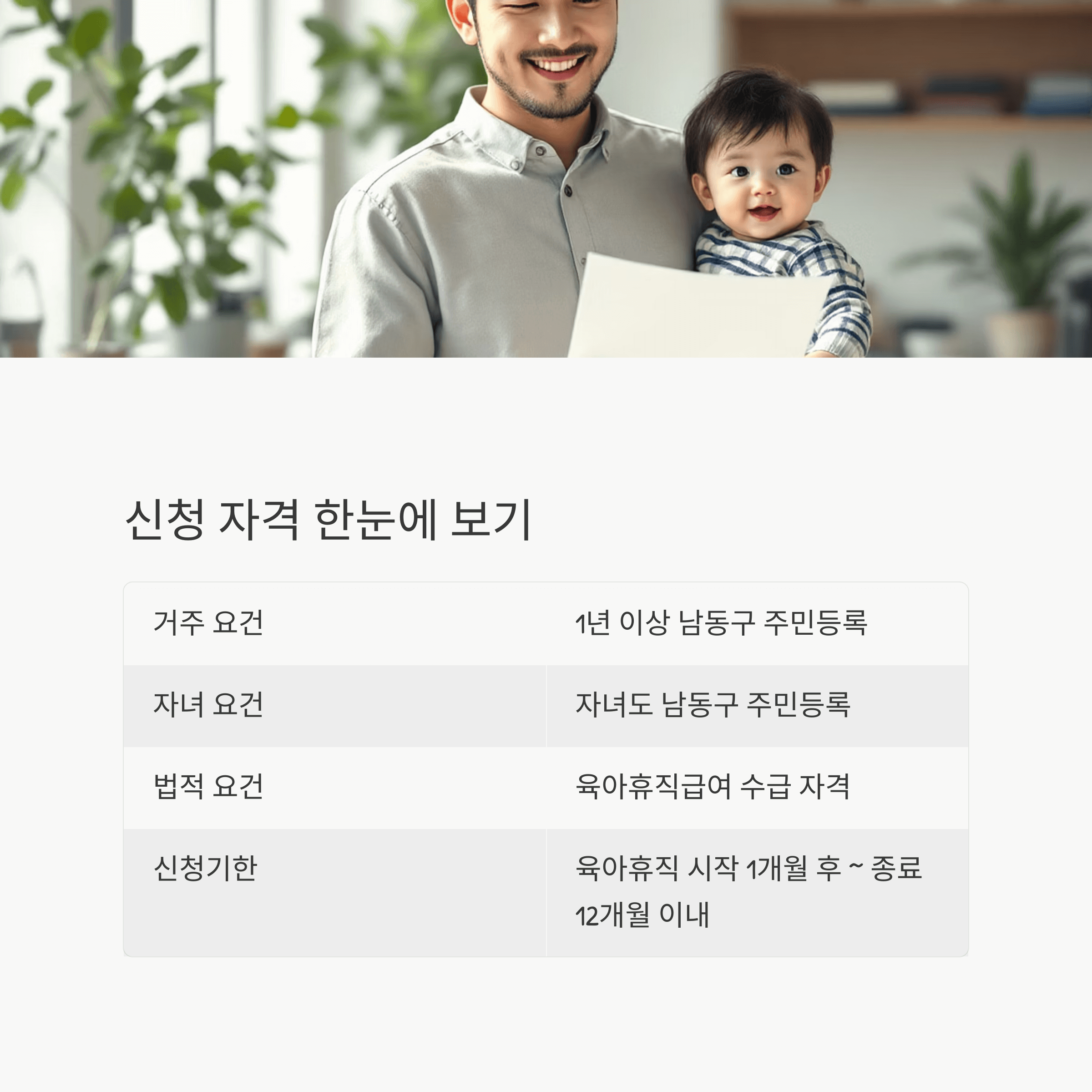 - 육아휴직 대상 자녀도 남동구에 주민등록