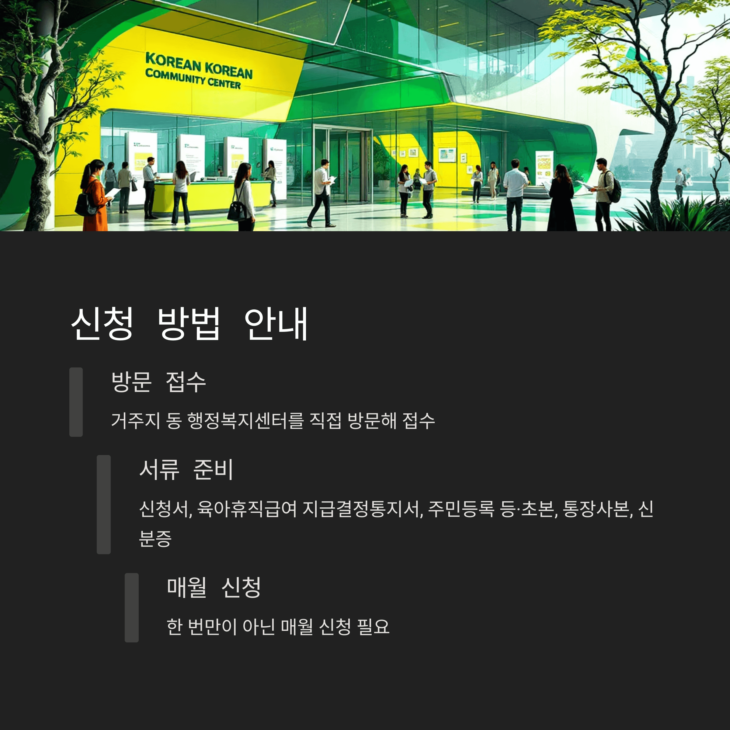 ✅ 신청은 거주지 동 행정복지센터를 직접 방문해 접수해야 합니다.