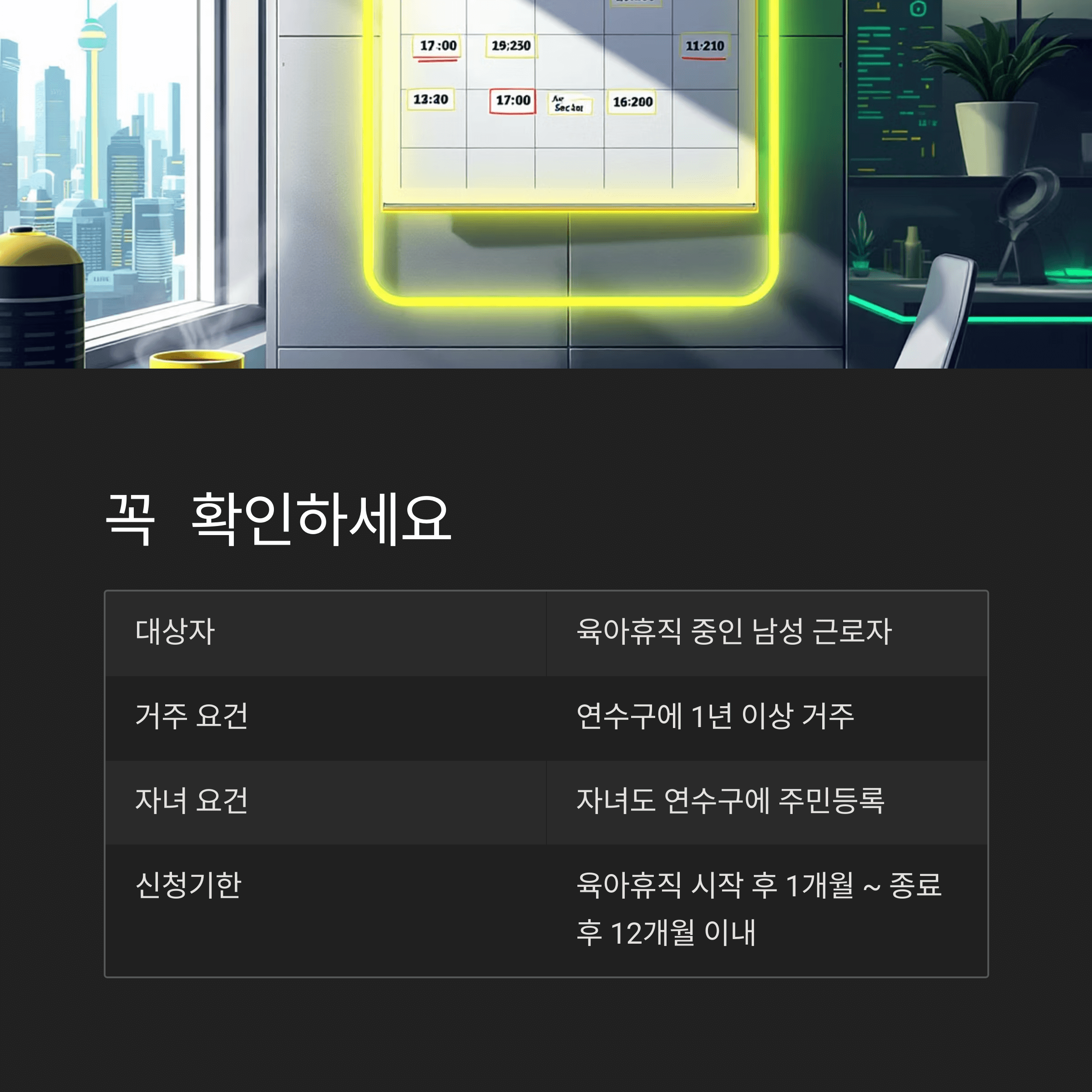 | 대상자 | 육아휴직 중인 남성 근로자 |
