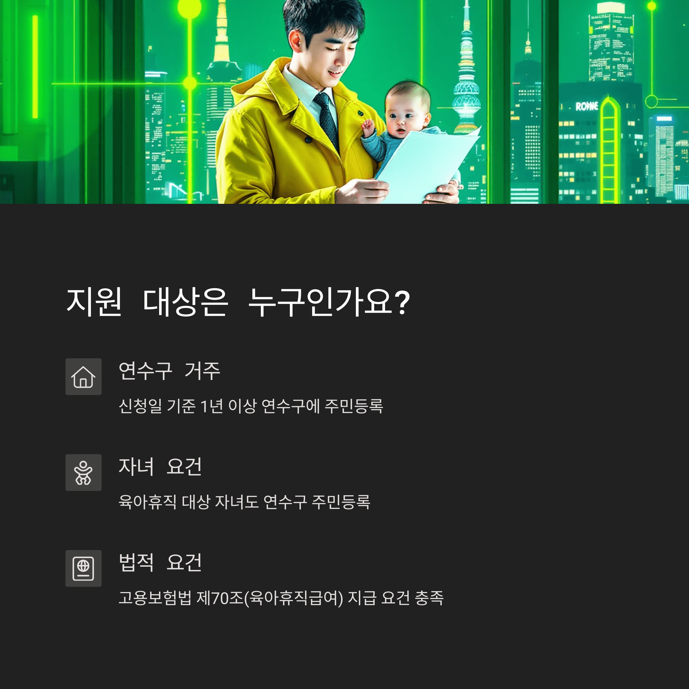 - 고용보험법 제70조(육아휴직급여) 지급 요건 충족