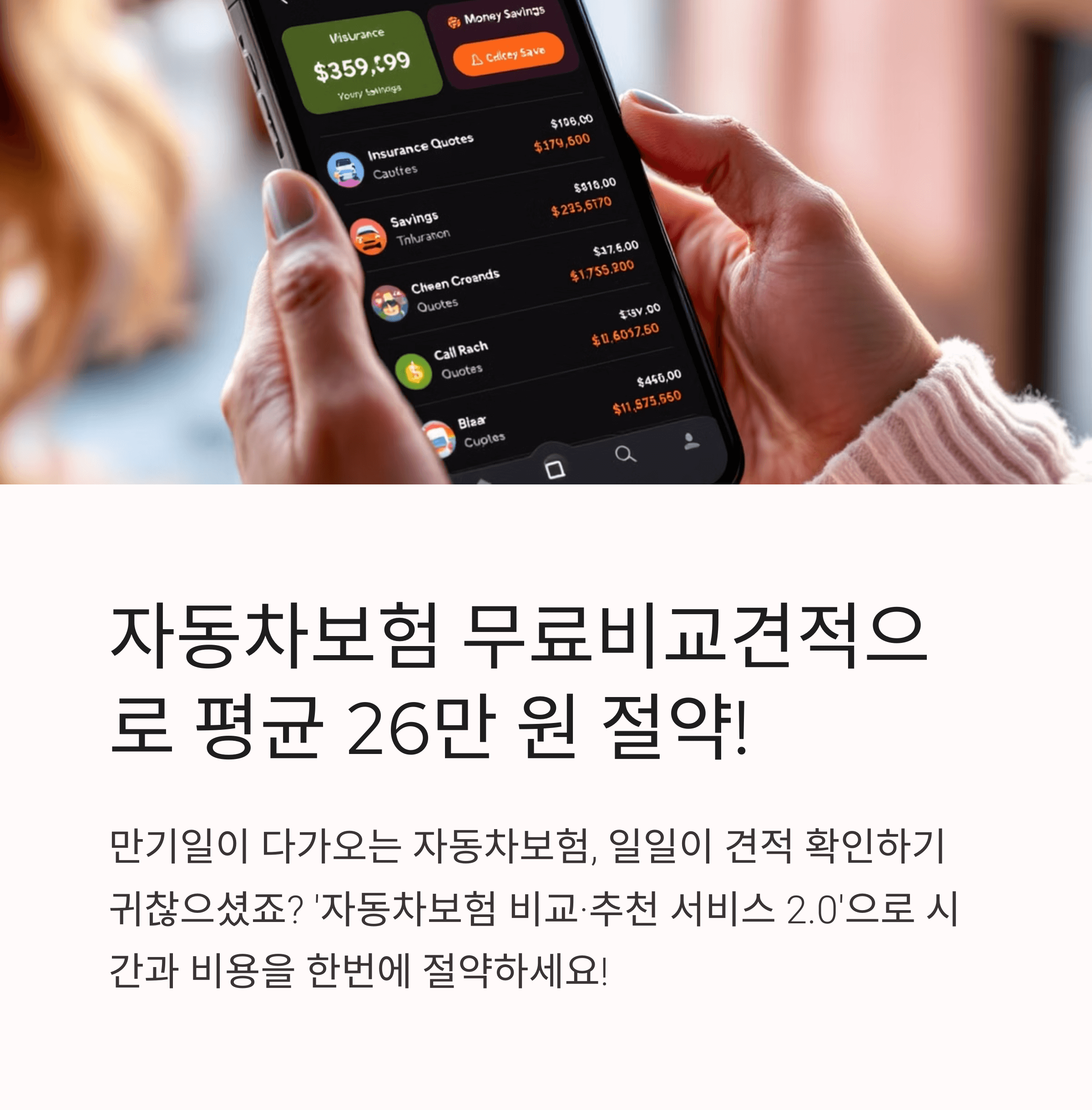 자동차보험료를 아끼는 가장 확실한 방법, 지금 바로 비교해보세요!