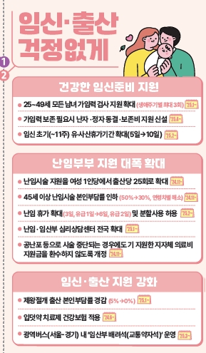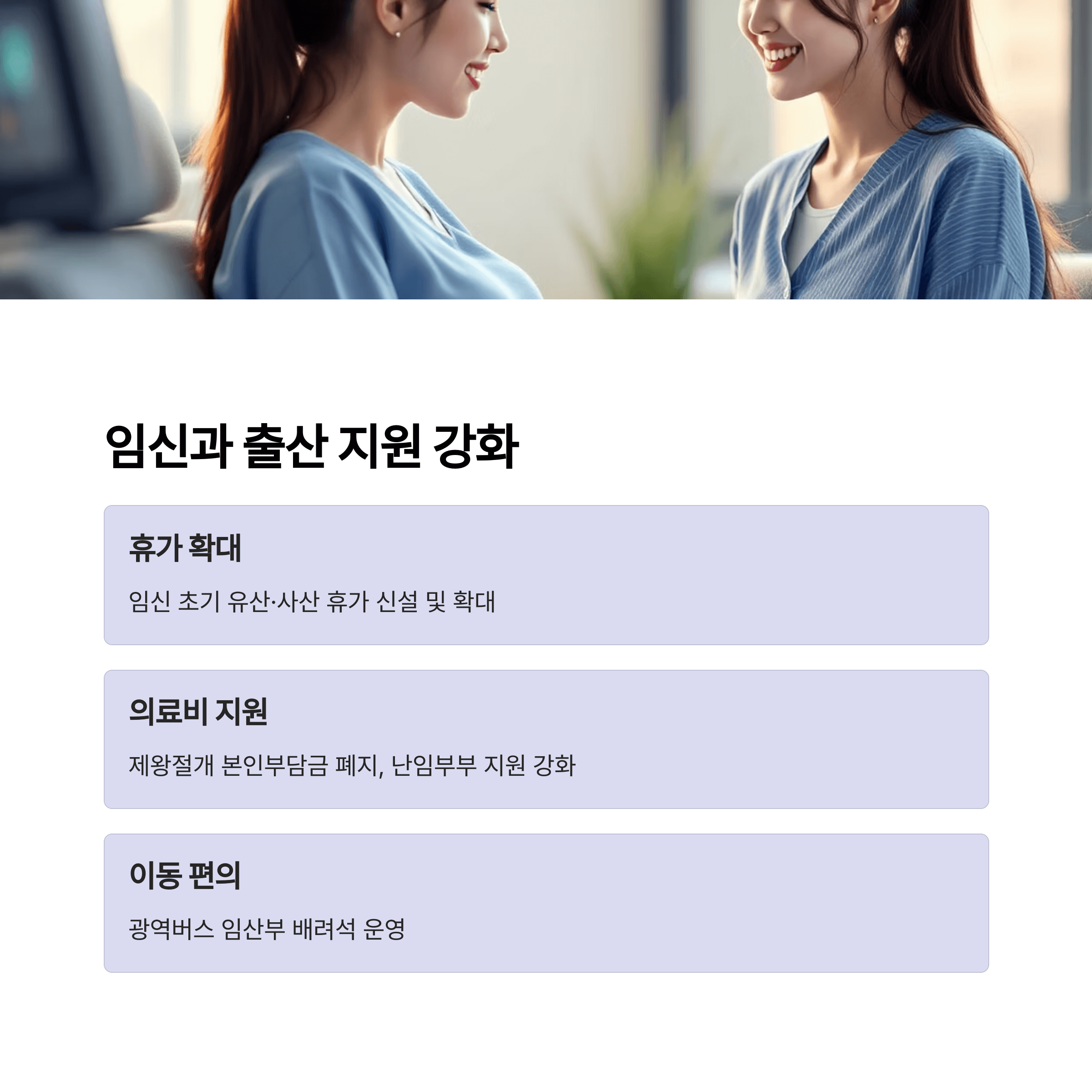 제왕절개에 대한 본인부담금이 사라지고, 광역버스 임산부 배려석 운영으로 이동 편의성도 높아집니다.
