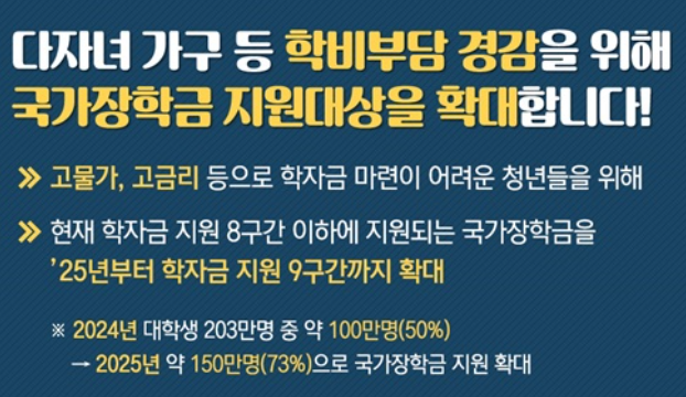 다자녀 대학등록금 소득요건도 완화되어 교육비 부담이 줄어듭니다.