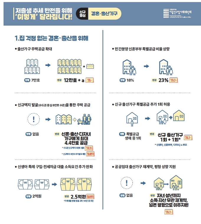 신혼부부와 다자녀 가구는 특별공급 기회도 증가하고, 소득 요건도 완화됩니다.