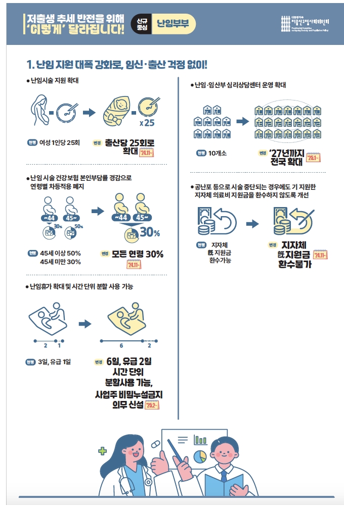 임신 초기 유산 및 사산에 대한 휴가가 확대되고, 난임부부 지원도 크게 강화됩니다.
