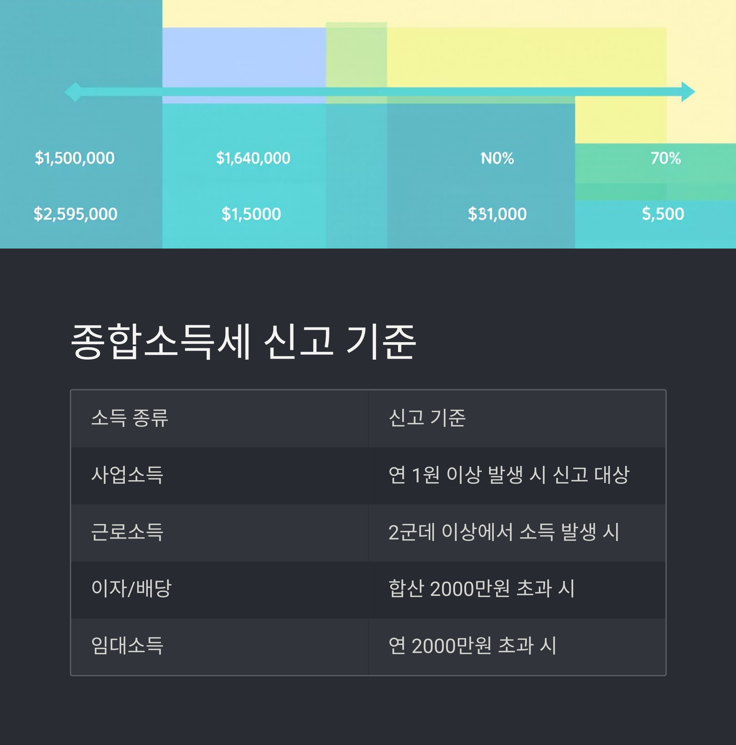 | 이자/배당 | 합산 2000만원 초과 시 |