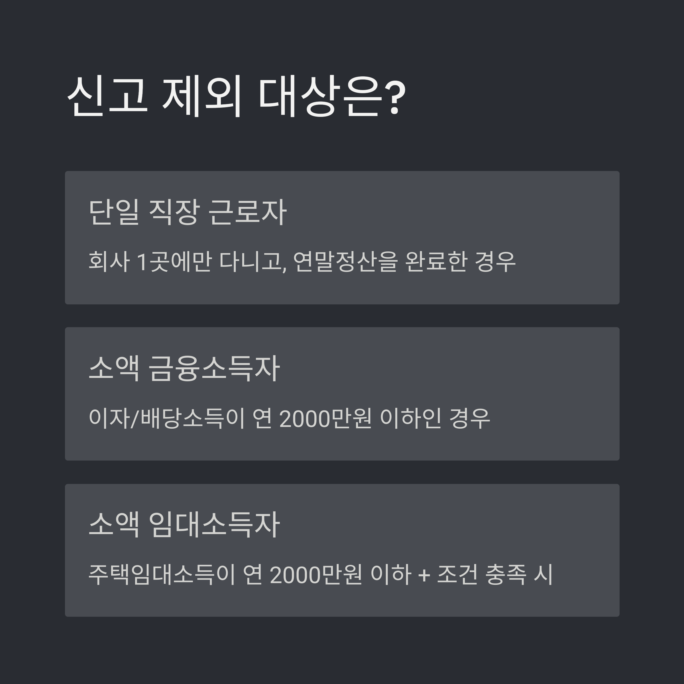 | 사업소득 | 연 1원 이상 발생 시 신고 대상 (프리랜서 포함) |