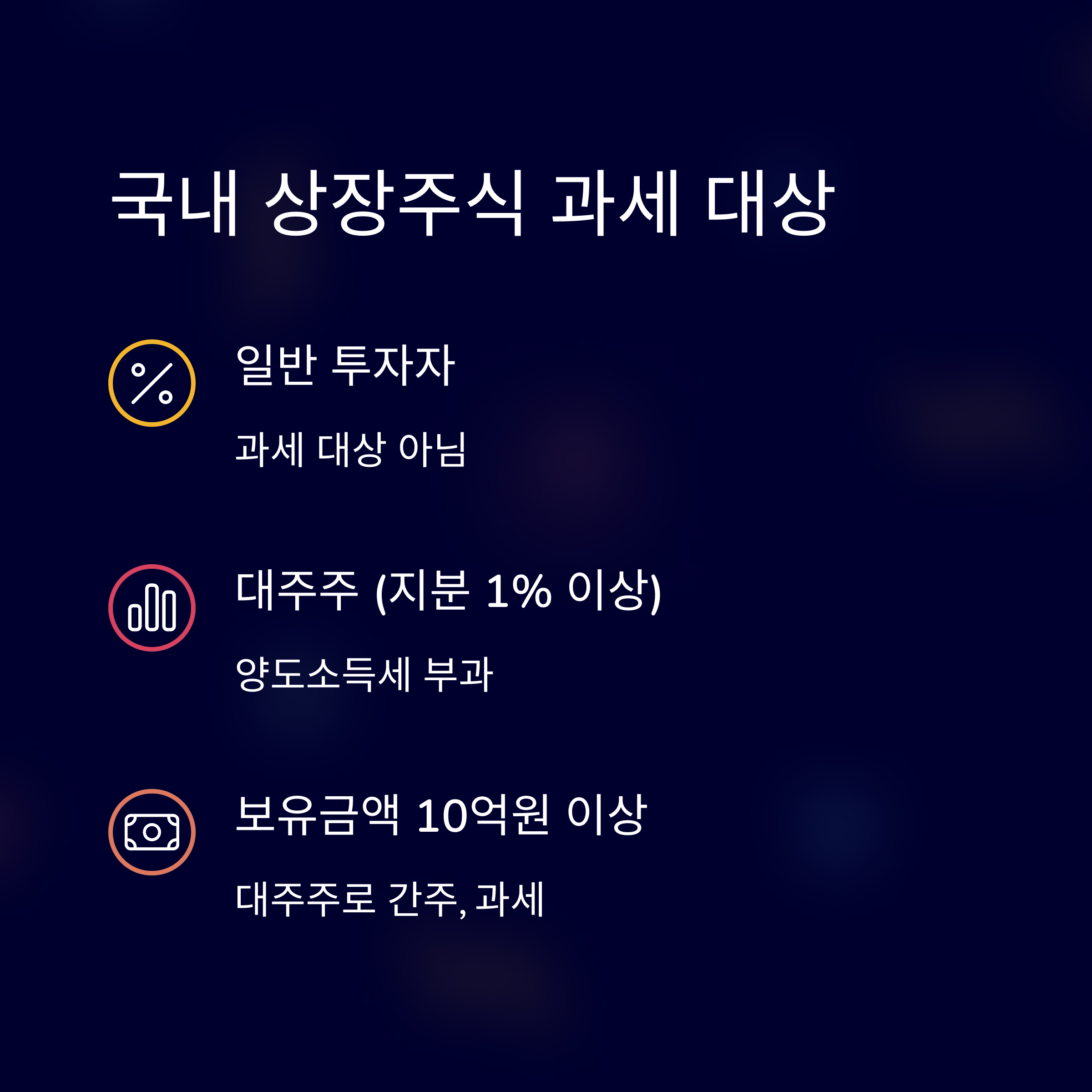 이러한 투자자는 '대주주'로 간주되며 양도소득세가 부과됩니다.