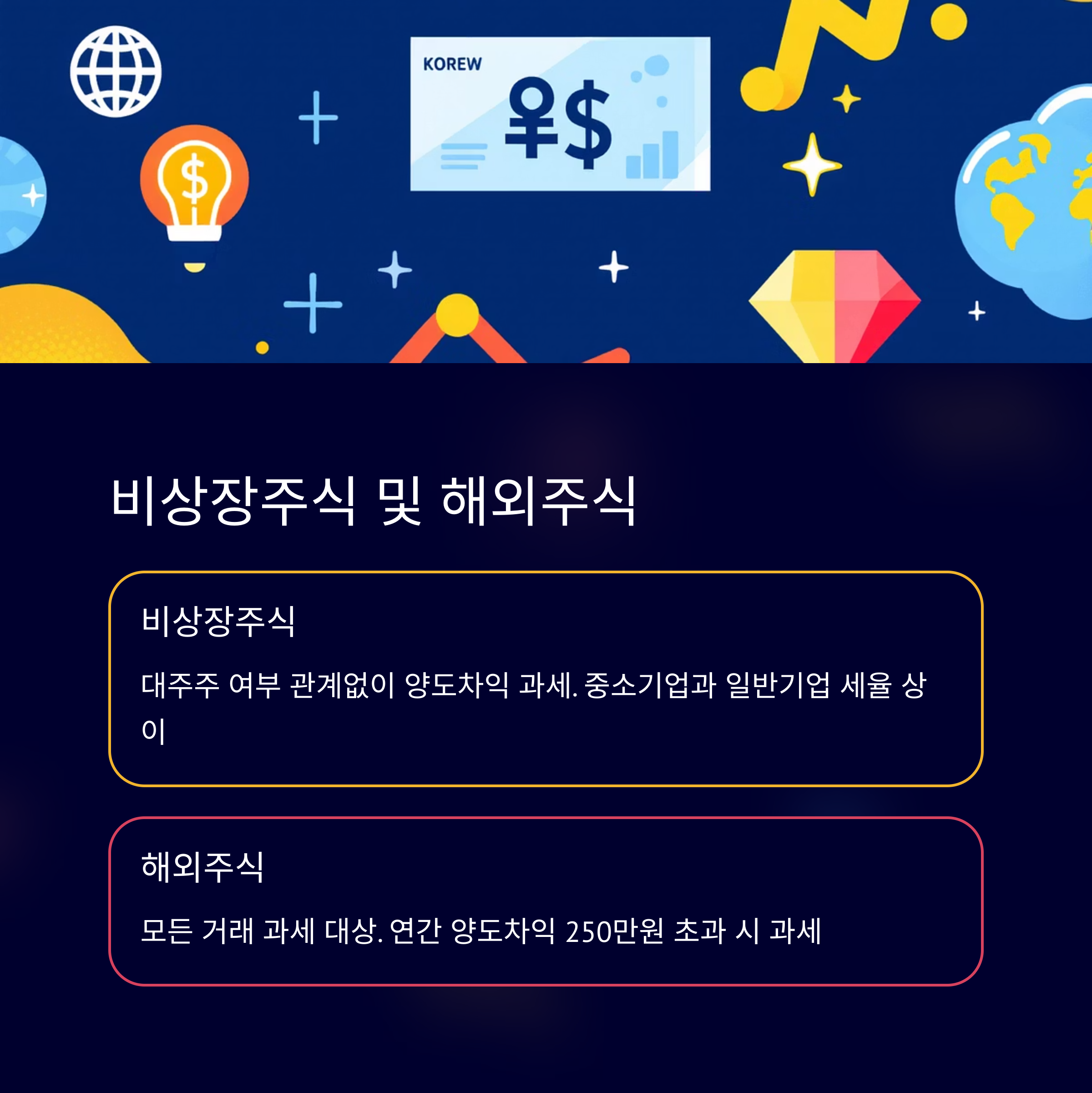 | 해외주식 | 22% (지방세 포함) | 연 250만 원 공제 후 과세 |