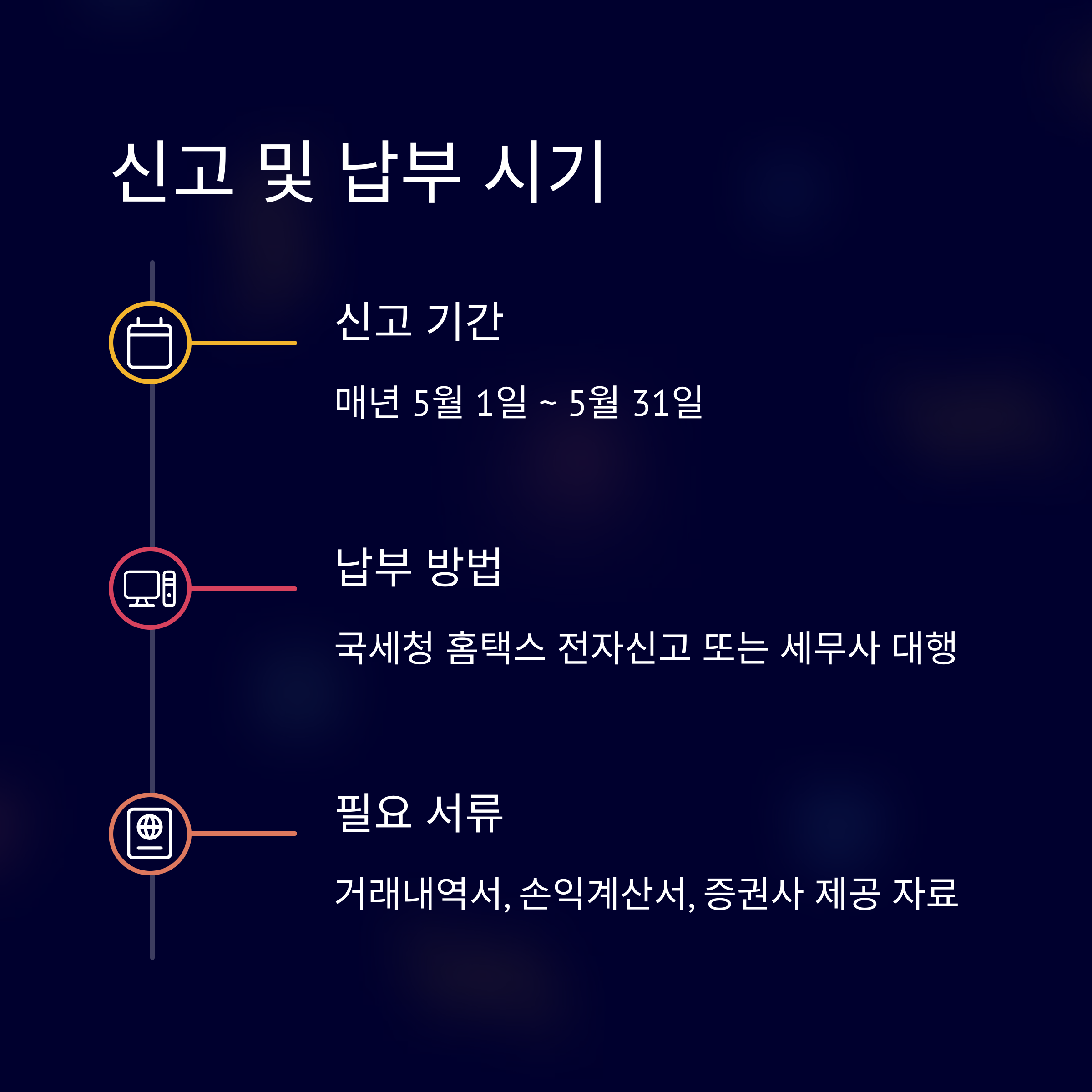 - 신고 기간: 매년 5월 1일 ~ 5월 31일