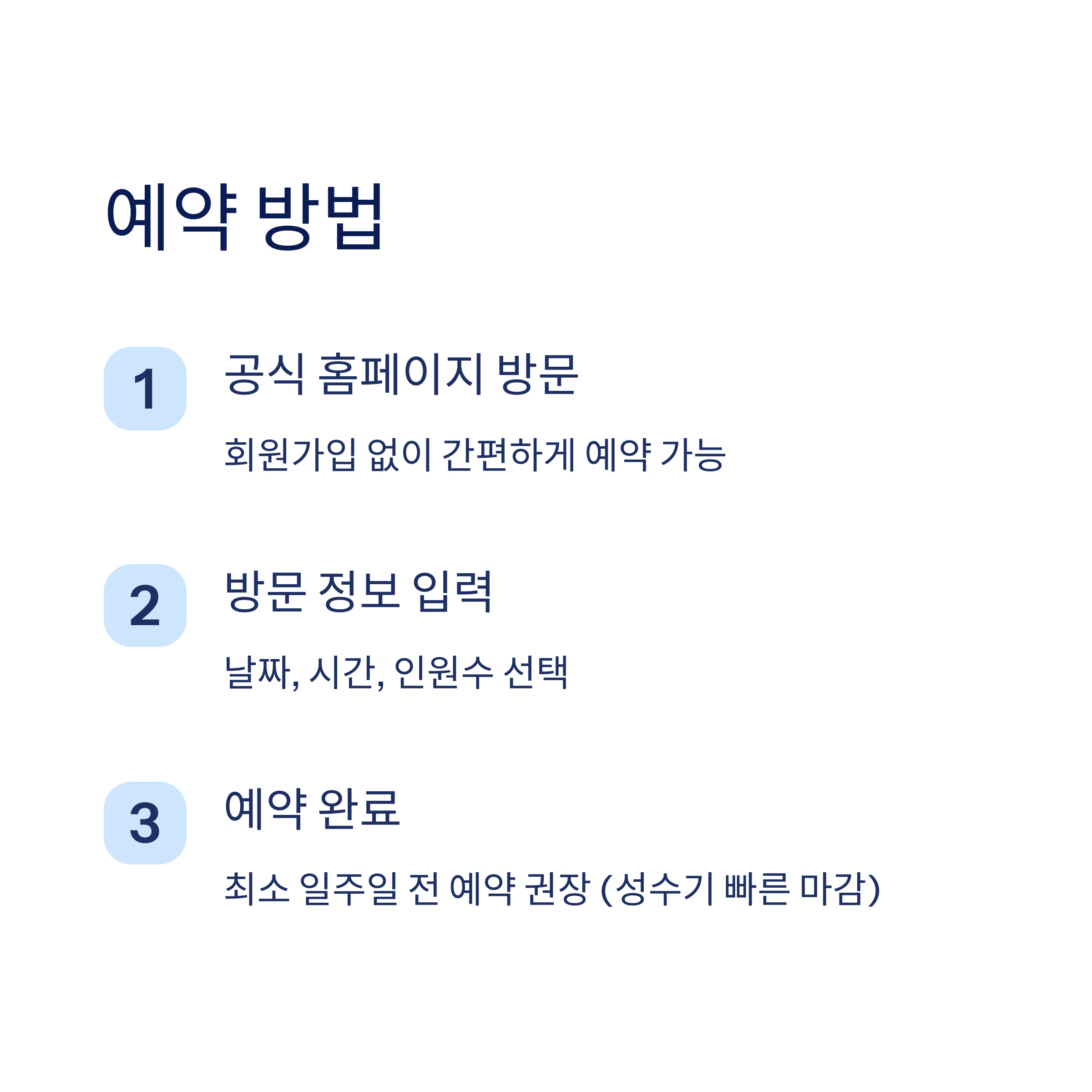 - 예약 기간: 최소 방문 1일 전까지 가능