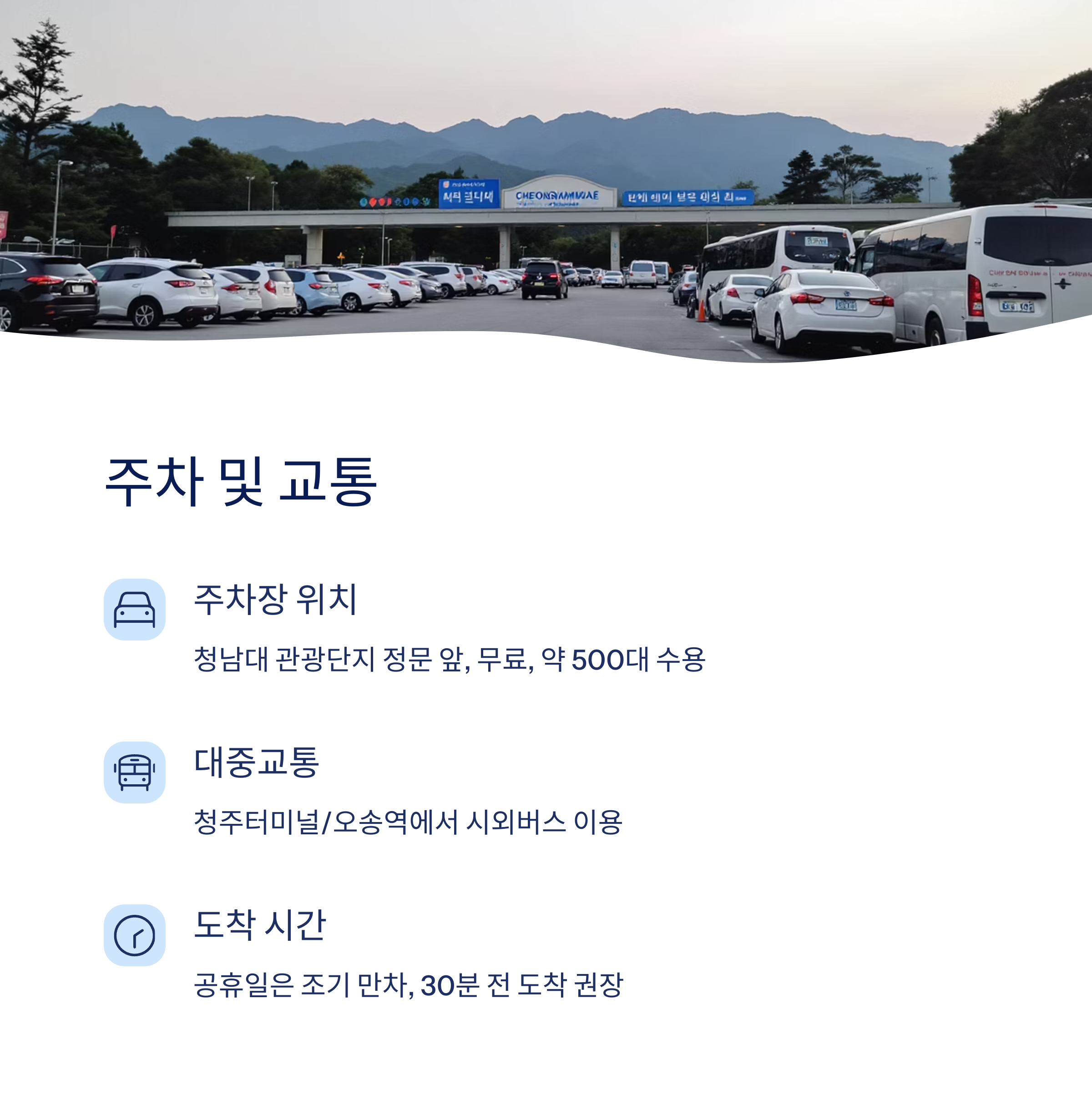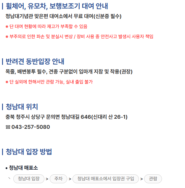 - 주차장 위치: 청남대 관광단지 정문 앞