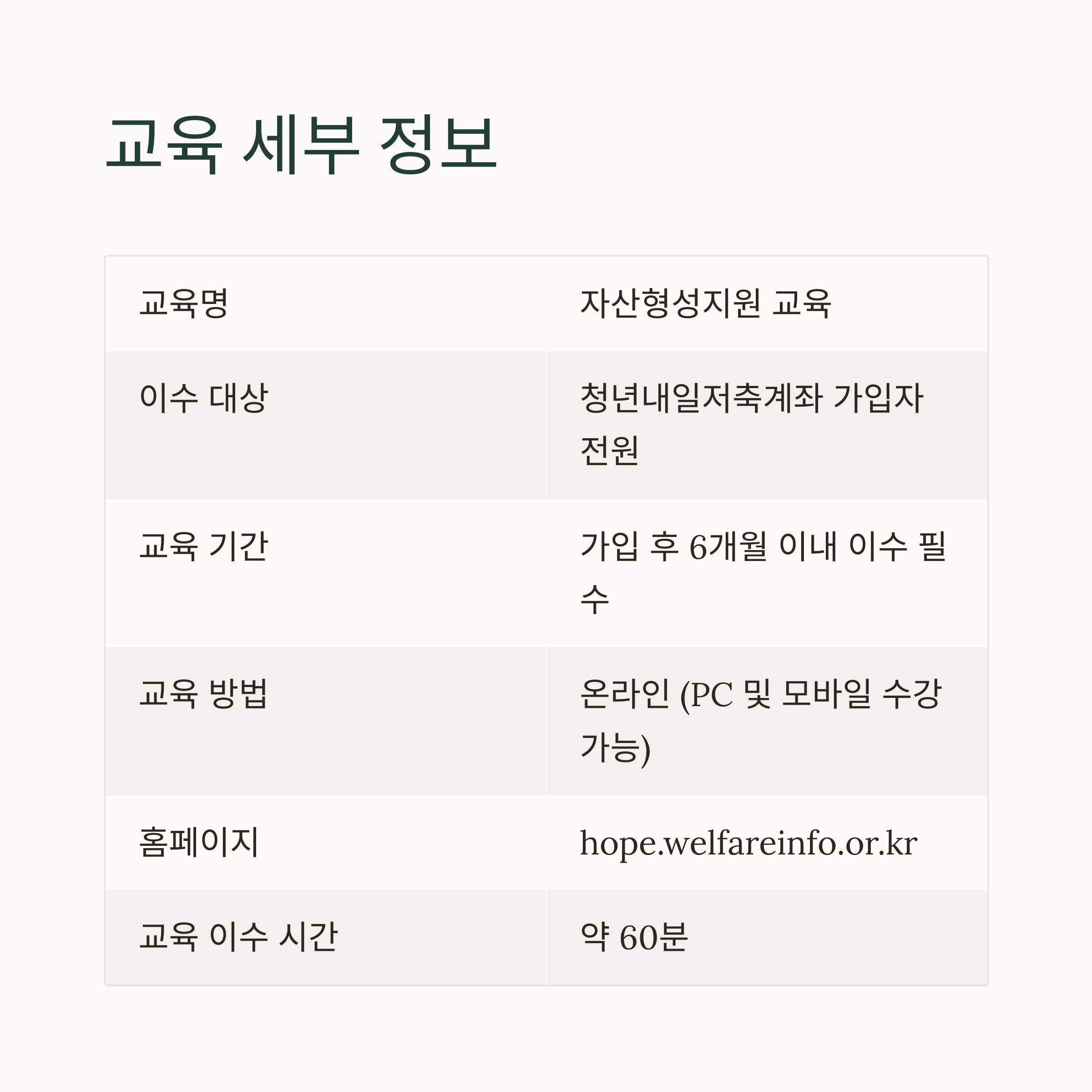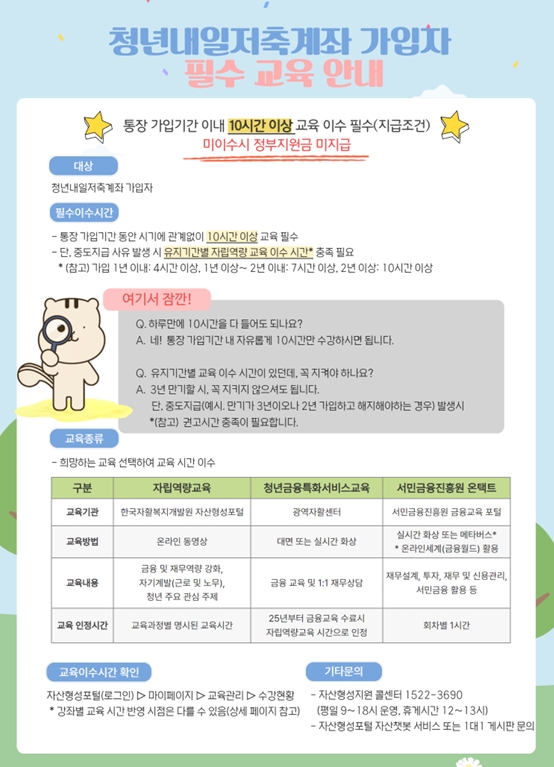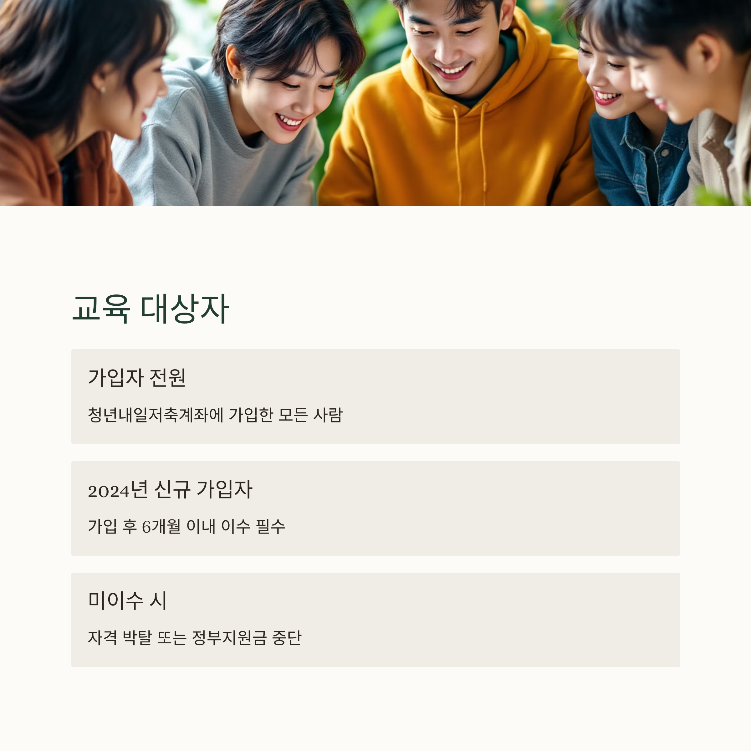 | 이수 대상 | 청년내일저축계좌 가입자 전원 |