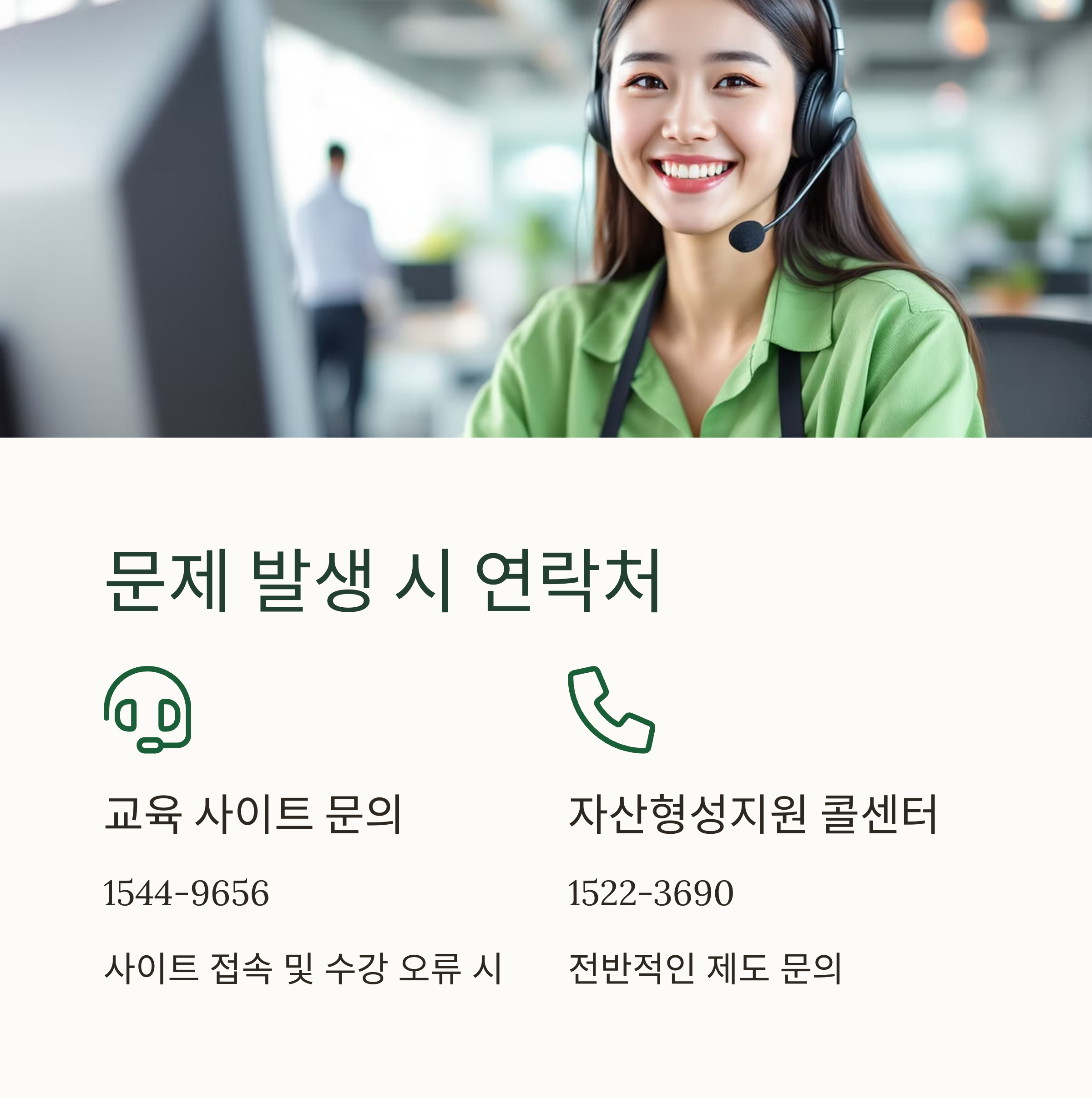 | 교육 사이트 문의 | 1544-9656 | 사이트 접속 및 수강 오류 시 |