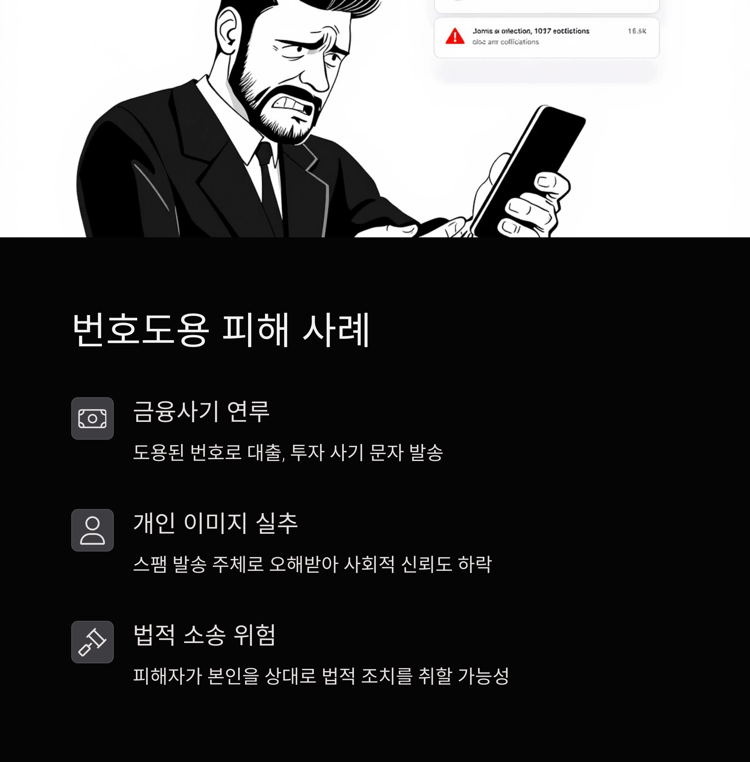 번호도용은 사용자의 동의 없이 제3자가 전화번호를 무단으로 이용해 문자나 전화를 발송하는 행위를 말합니다. 이는 단순한 스팸을 넘어 금융사기, 개인정보 유출 등 심각한 피해로 이어질 수 있어 반드시 사전에 대비해야 합니다.