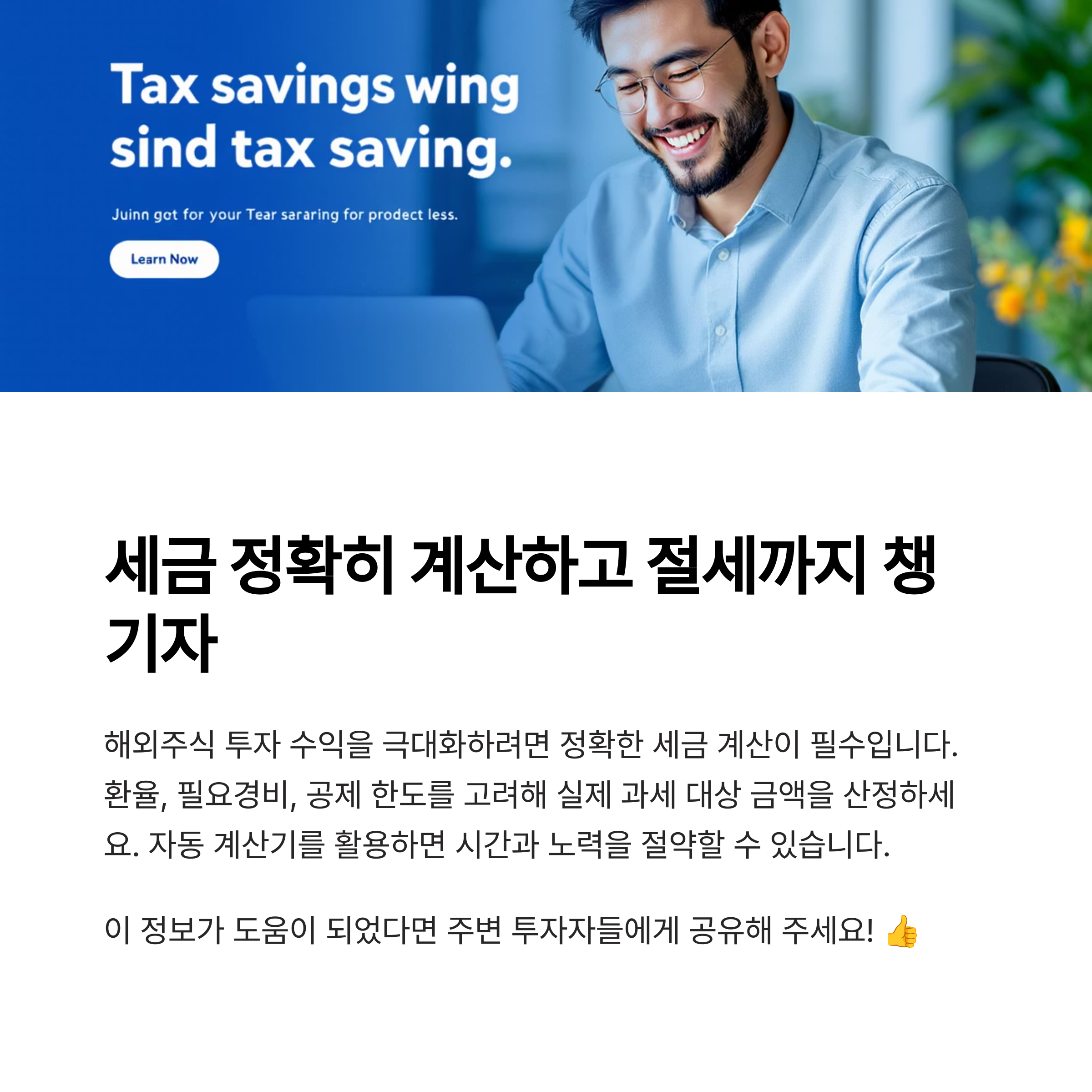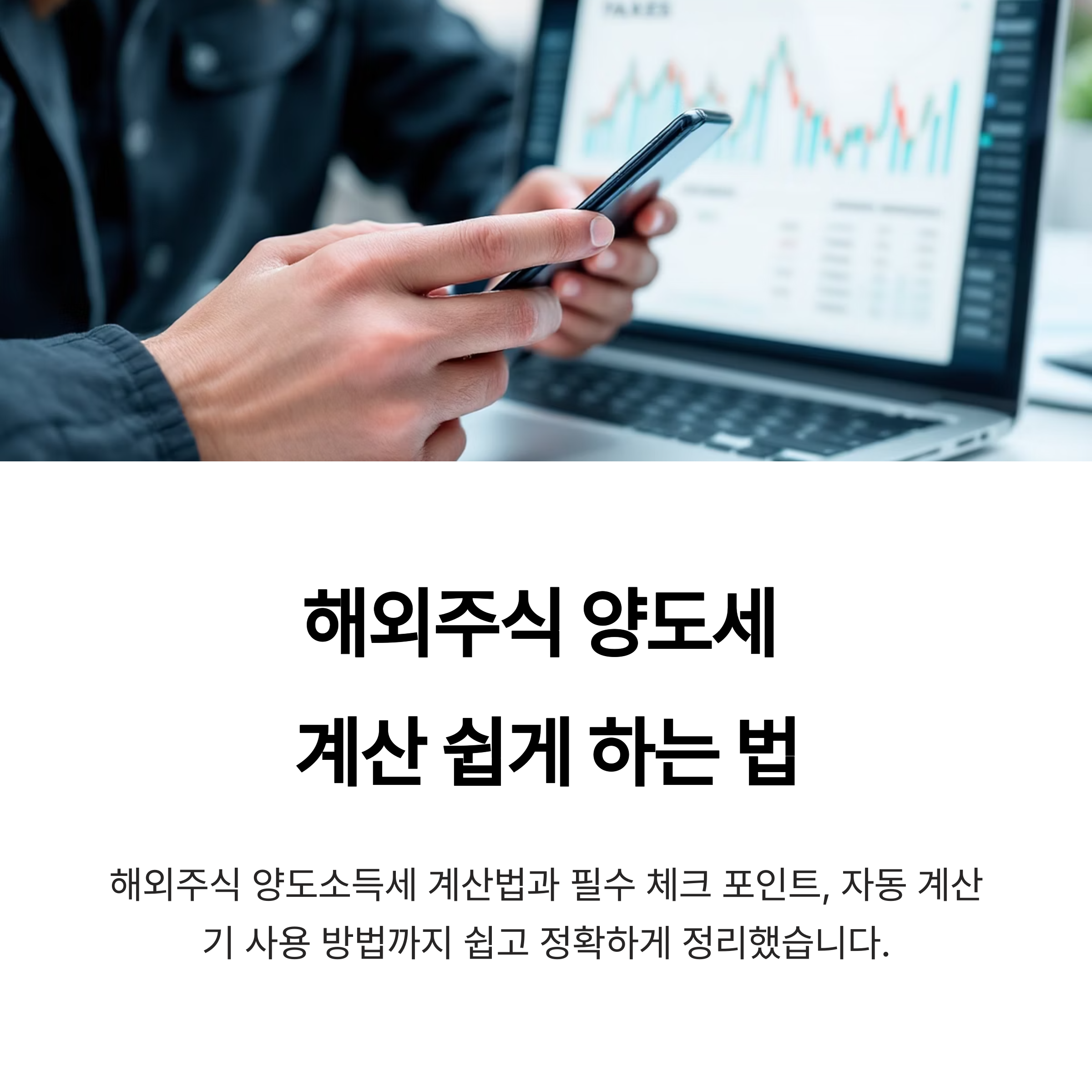 해외주식 양도소득세 계산법과 필수 체크 포인트, 자동 계산기 사용 방법까지 쉽고 정확하게 정리했습니다. 빠르게 해외주식 세금 계산하려면 아래 버튼을 눌러주세요.
