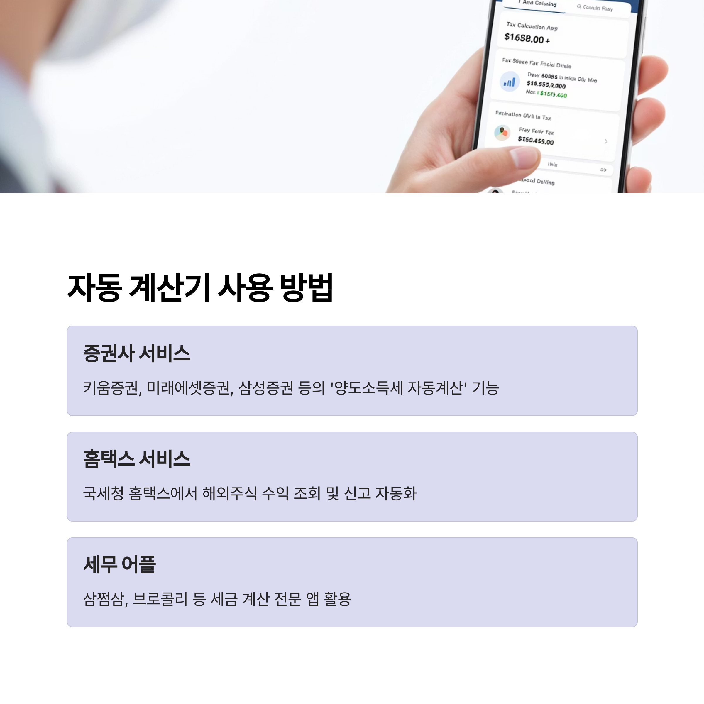 요즘은 여러 플랫폼에서 해외주식 세금을 자동으로 계산해주는 서비스를 제공합니다. 대표적인 방법은 다음과 같습니다.