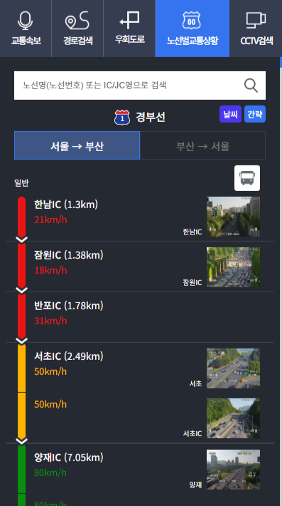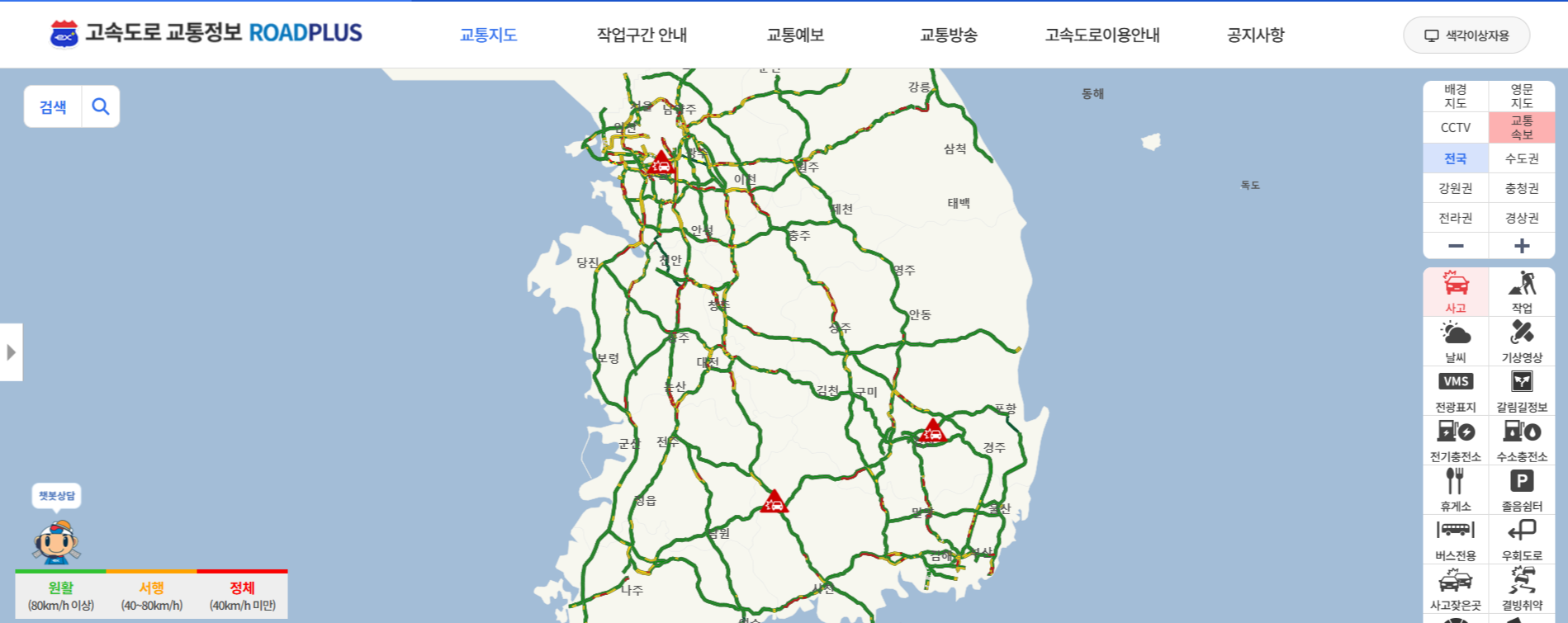 - CCTV 영상도 제공되어 시각적으로 도로 상황을 파악할 수 있습니다.