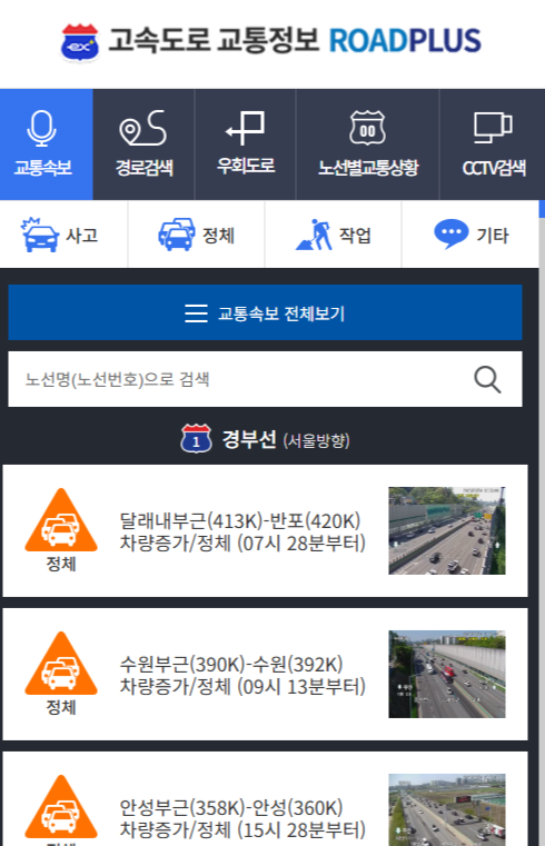 빠르게 정체 상황을 파악하고 싶으시면 아래 버튼에서 확인하세요.
