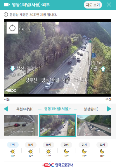 로드플러스나 한국도로공사 앱에서 CCTV 영상을 클릭하면 해당 구간의 현장 상황을 바로 확인할 수 있습니다.