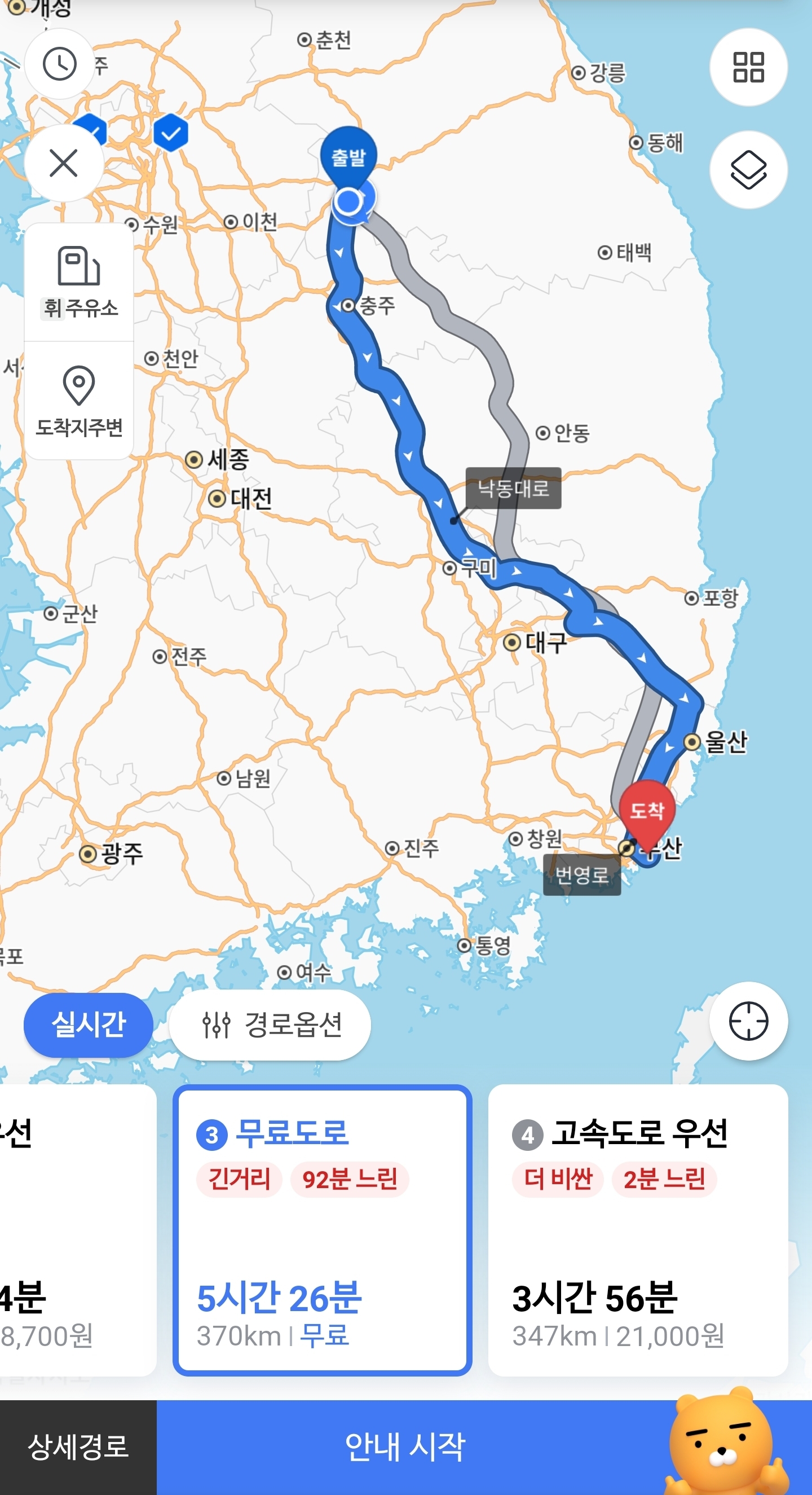 - 출발 전 반드시 정체 구간과 우회 도로 확인