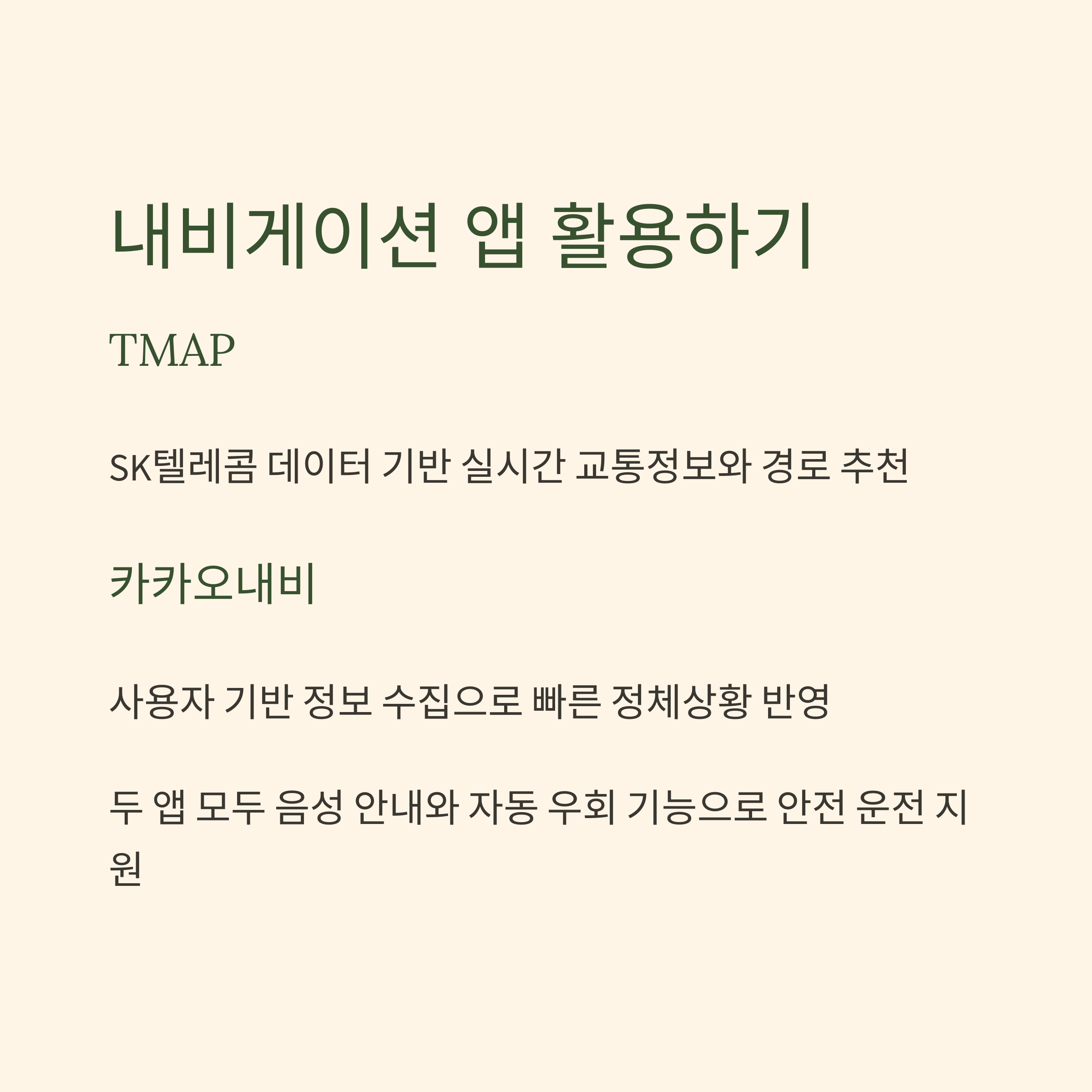 - 두 앱 모두 음성 안내 및 자동 우회 기능이 탁월해 운전 중에도 안전하게 활용 가능합니다.