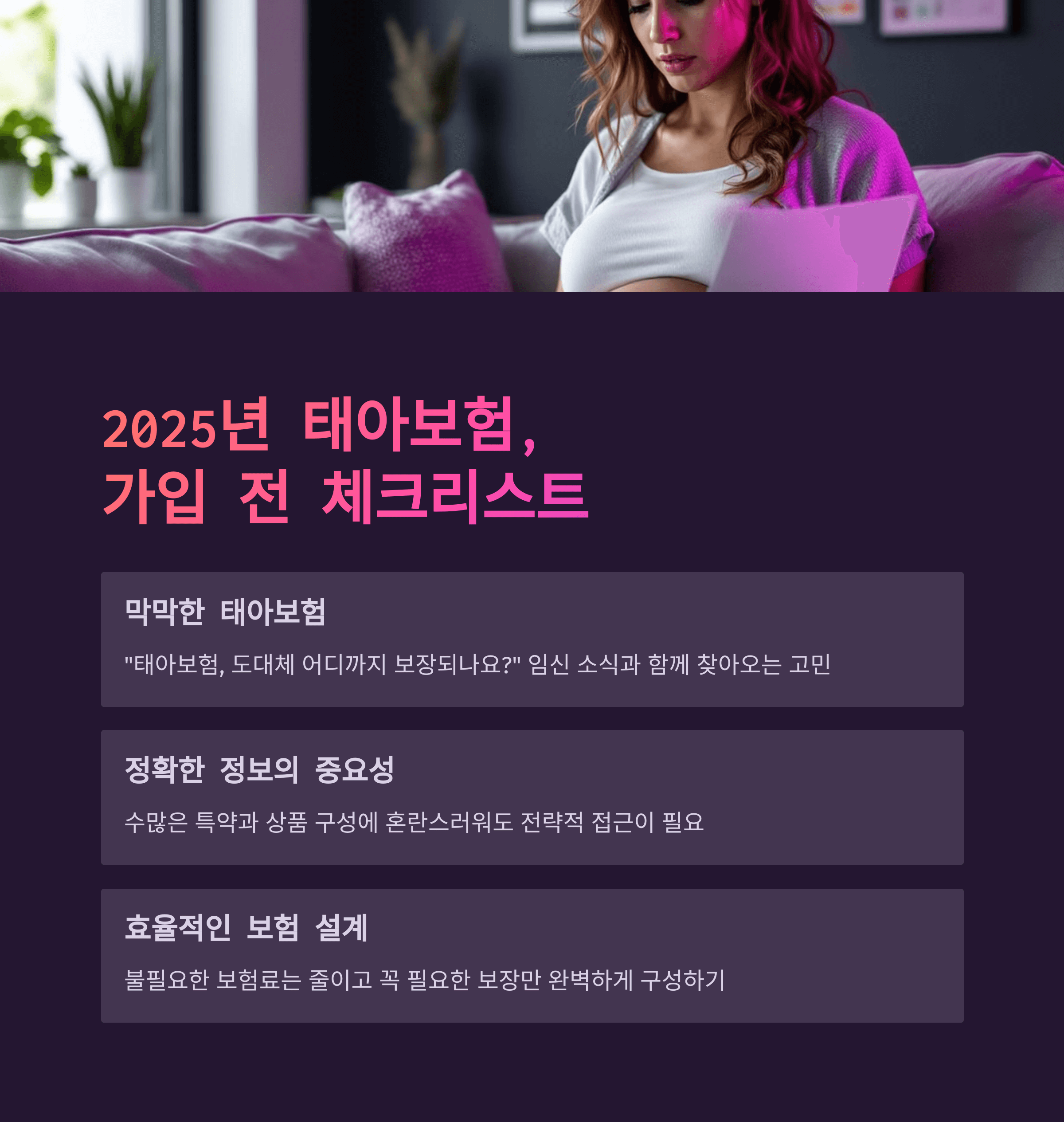 임신 소식을 듣고 처음으로 태아보험에 대해 알아보는 순간, 수많은 특약과 상품 구성에 막막함을 느끼게 됩니다. 하지만 정확한 정보와 전략이 있다면, 불필요한 보험료를 줄이면서도 꼭 필요한 보장을 완벽하게 구성할 수 있습니다.
