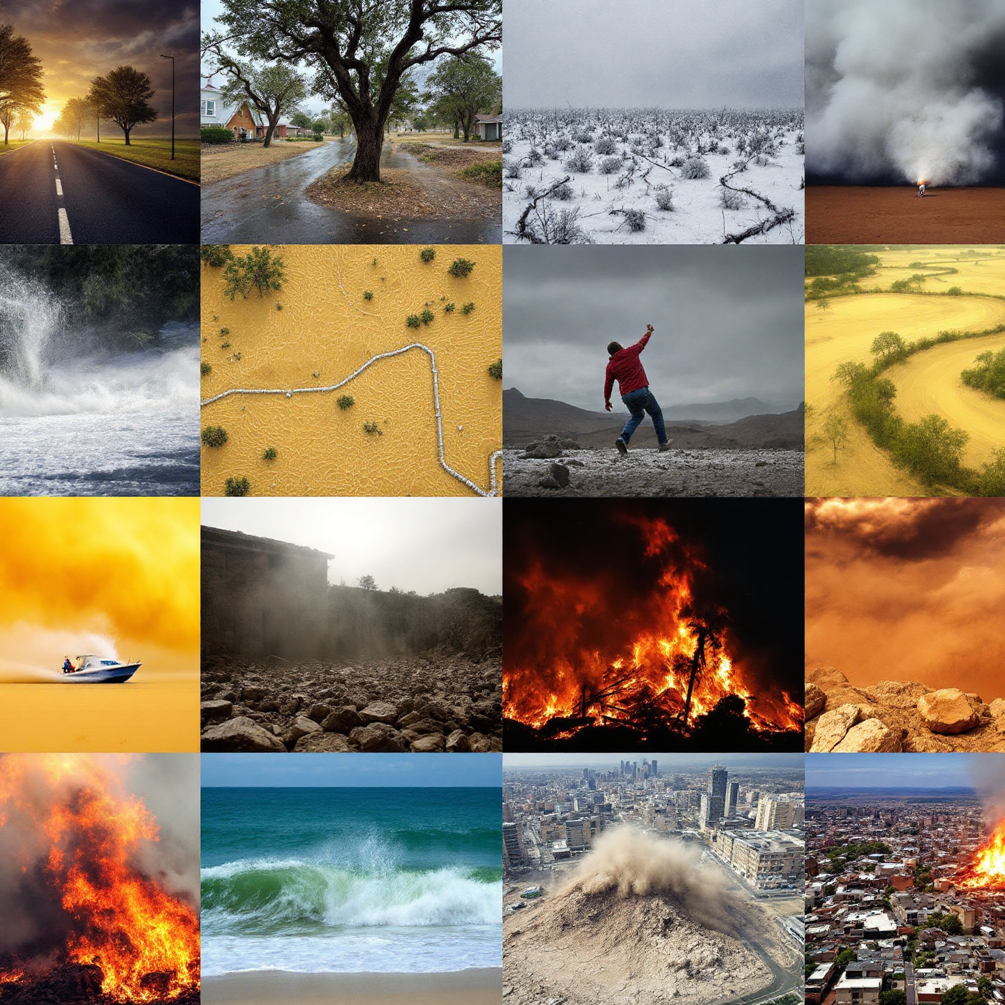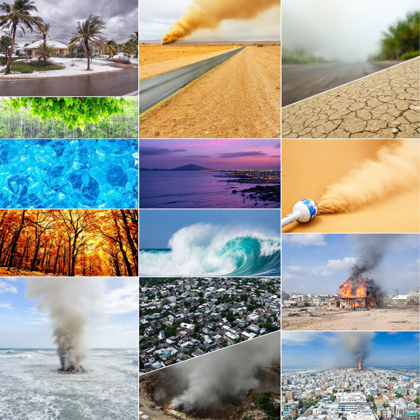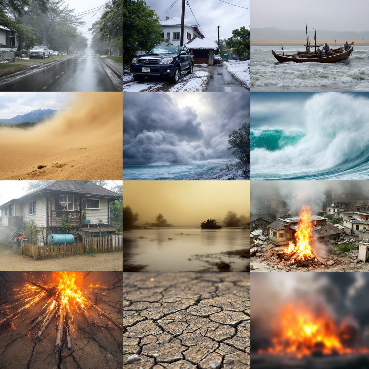 강풍, 호우, 대설, 건조, 폭염, 한파, 태풍, 황사, 해일, 풍랑, 산불, 가뭄, 지진 등(기상청이나 국가기관에서 발표하는 경우)
