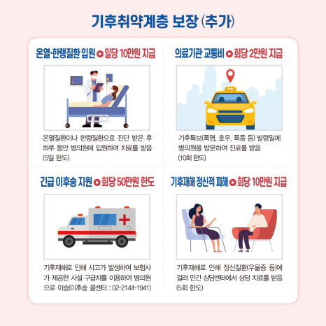 폭염, 한파 등으로 인한 온열·한랭 질환, 감염병, 기후재해에 따른 심리적 피해까지 다양한 항목 보장