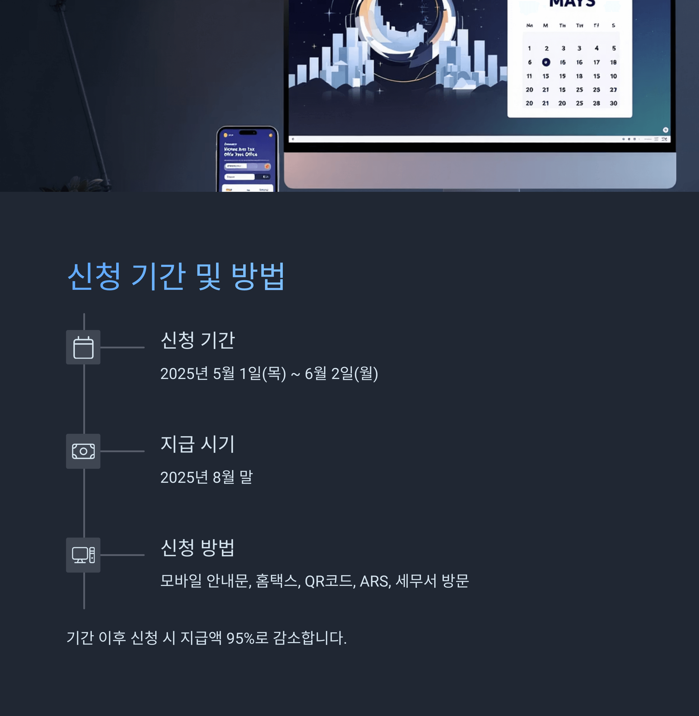 💡 주의사항: 2024년 9월 또는 2025년 3월에 이미 신청한 경우, 5월에 중복 신청할 필요 없습니다.