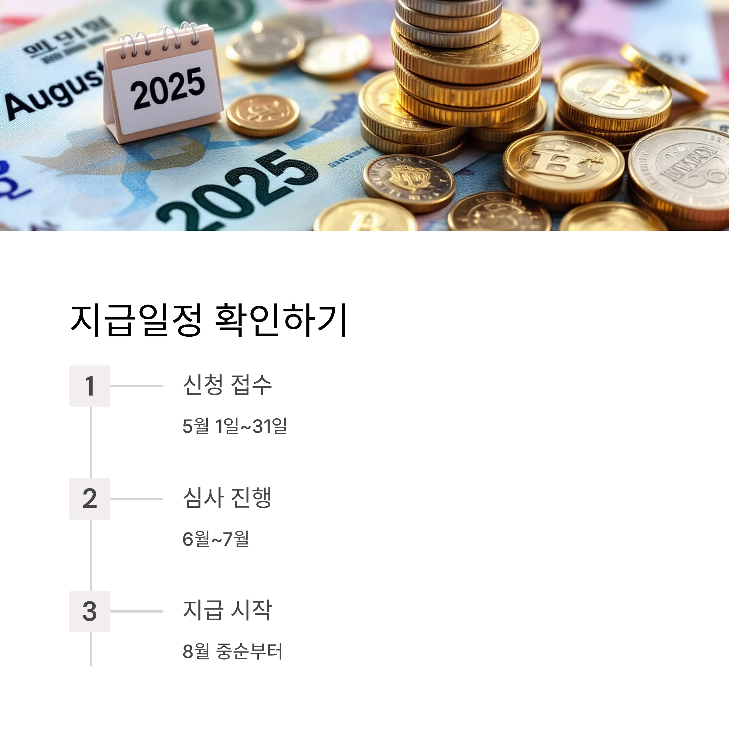 보통 8월 중순부터 지급이 시작되며, 신청 후 심사를 거쳐 지급 대상 여부가 확정됩니다. 추가 신청자의 경우 지급 일정이 조금 늦어질 수 있습니다.