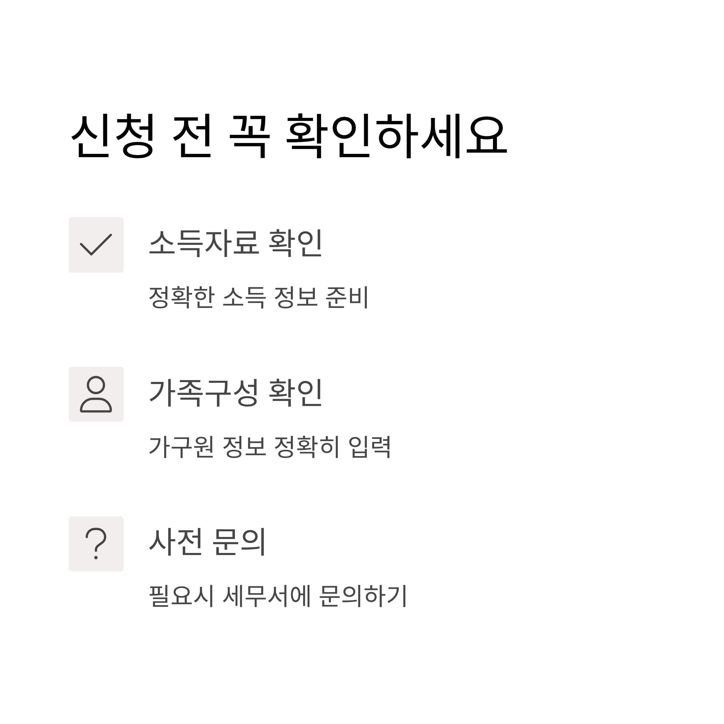 - 소득 요건: 가구 형태별 소득 기준 충족
