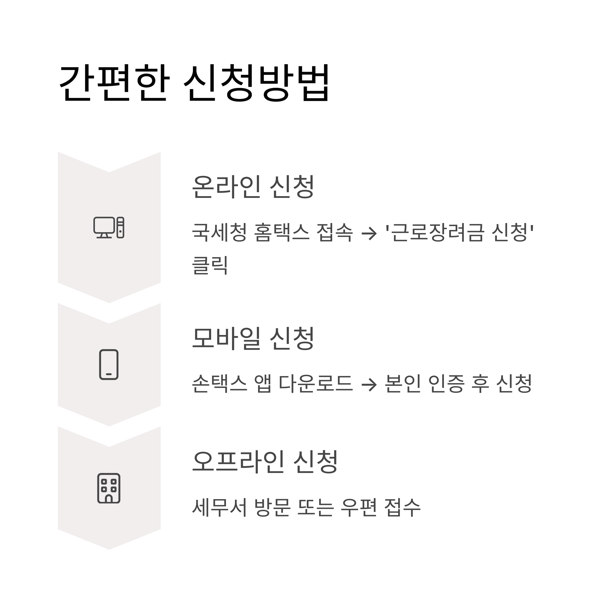 - 온라인 신청: 국세청 홈택스 접속 → ‘근로장려금 신청’ 클릭 → 신청서 작성 및 제출