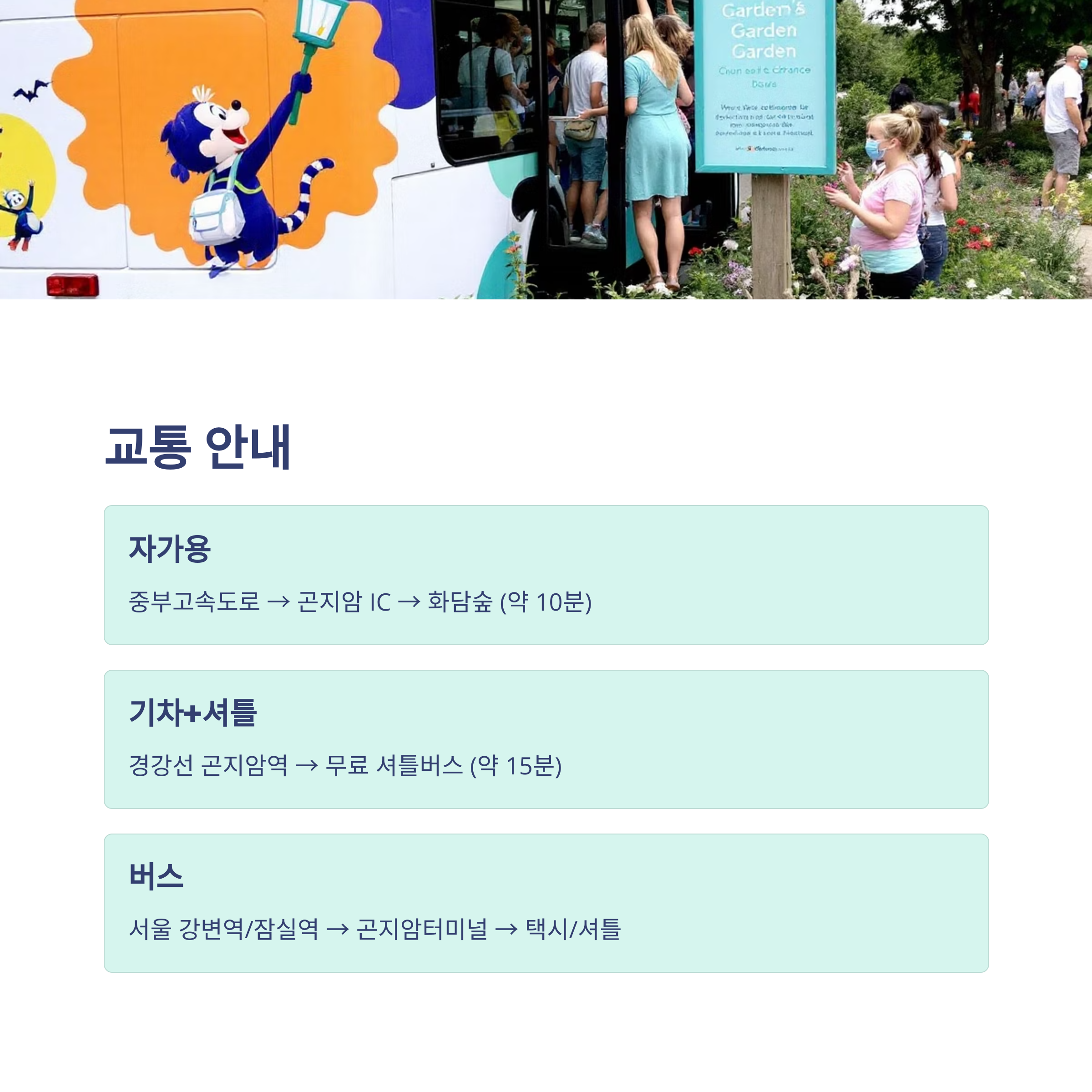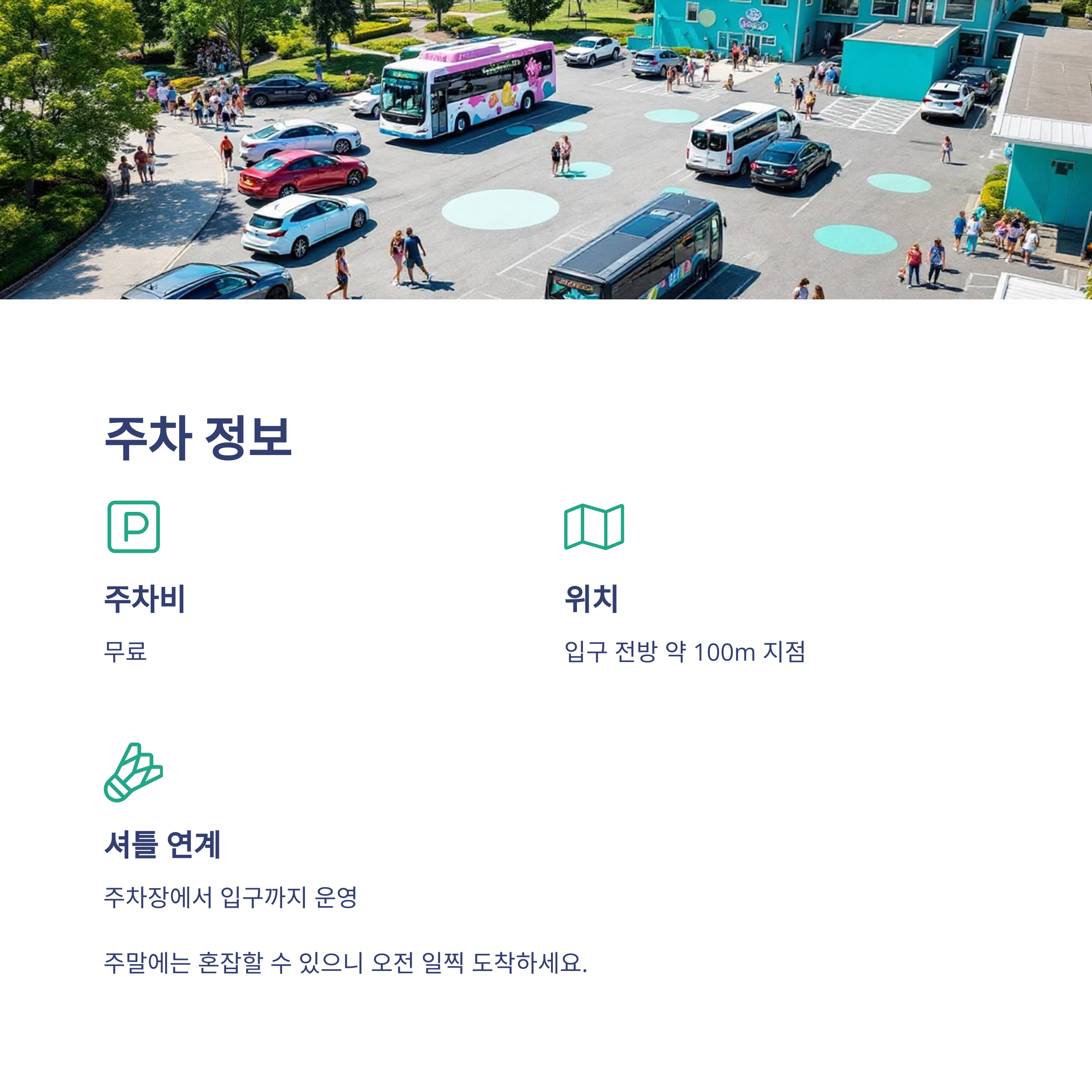 - 🚗 셔틀 연계 : 주차장에서 입구까지 셔틀 운영