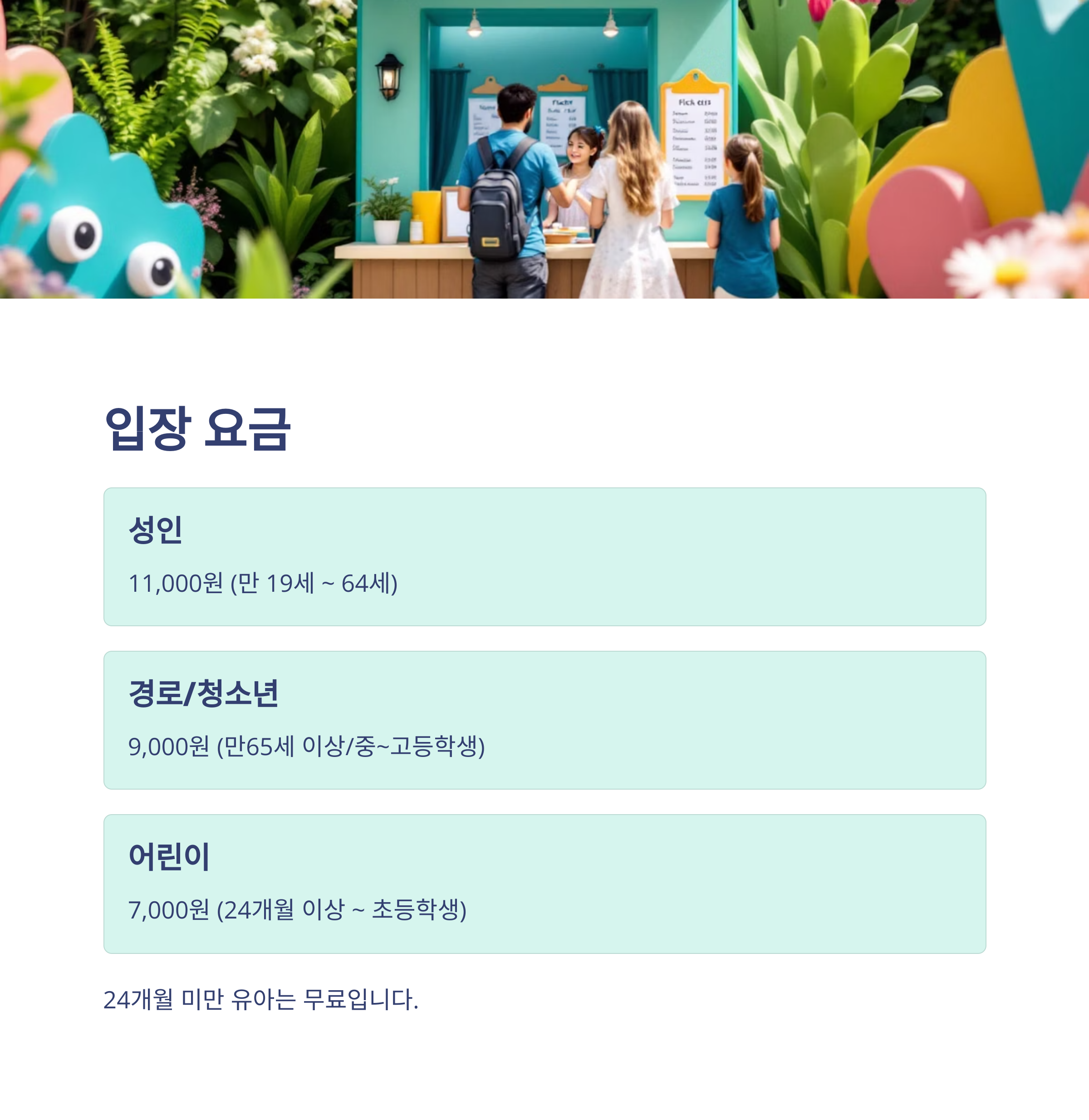 | 어린이 | 7,000원 | 24개월 이상 ~ 초등학생 이하 |
