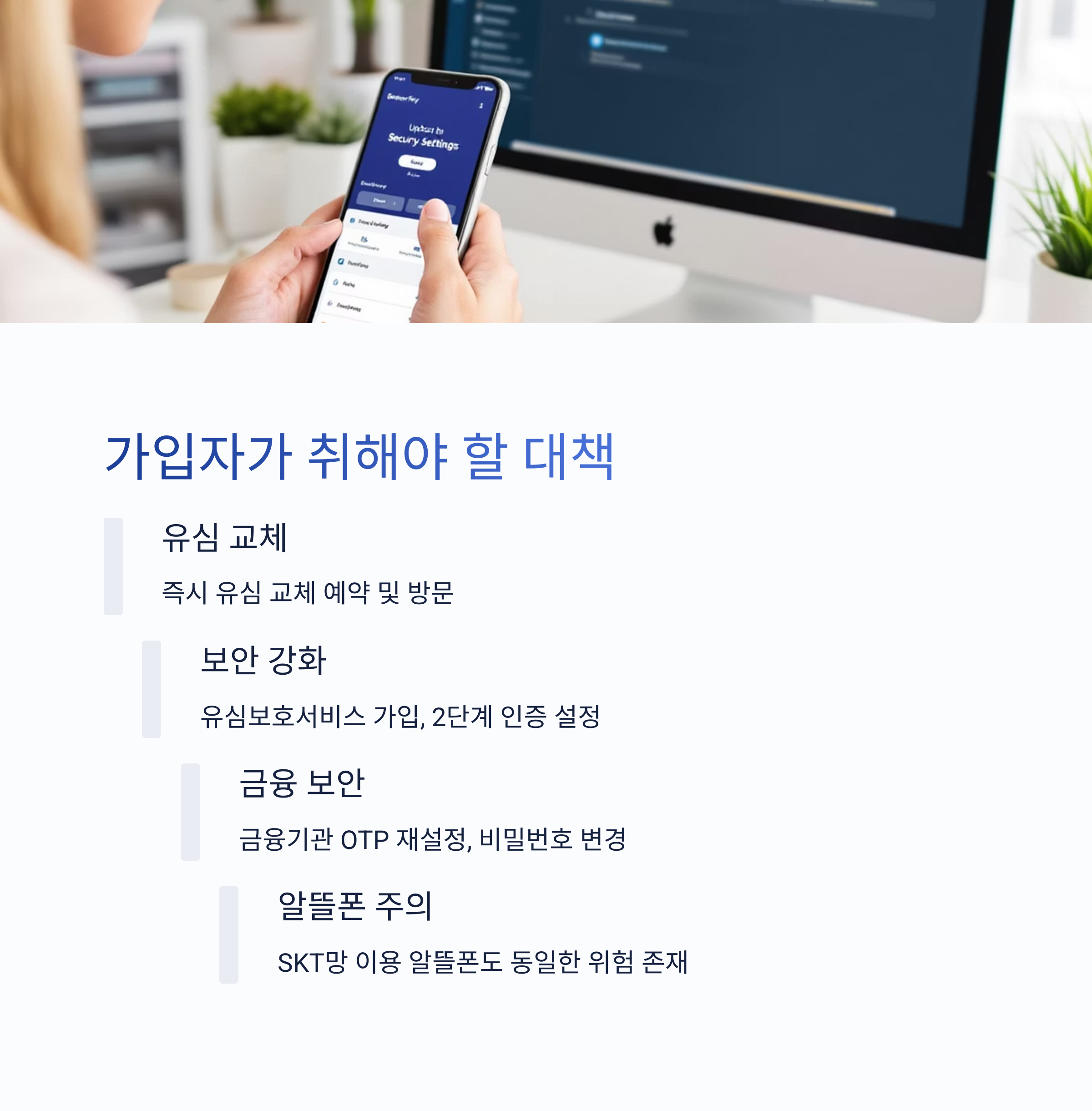 가입자들은 즉시 유심을 교체하고, 유심보호서비스를 가입해야 합니다.