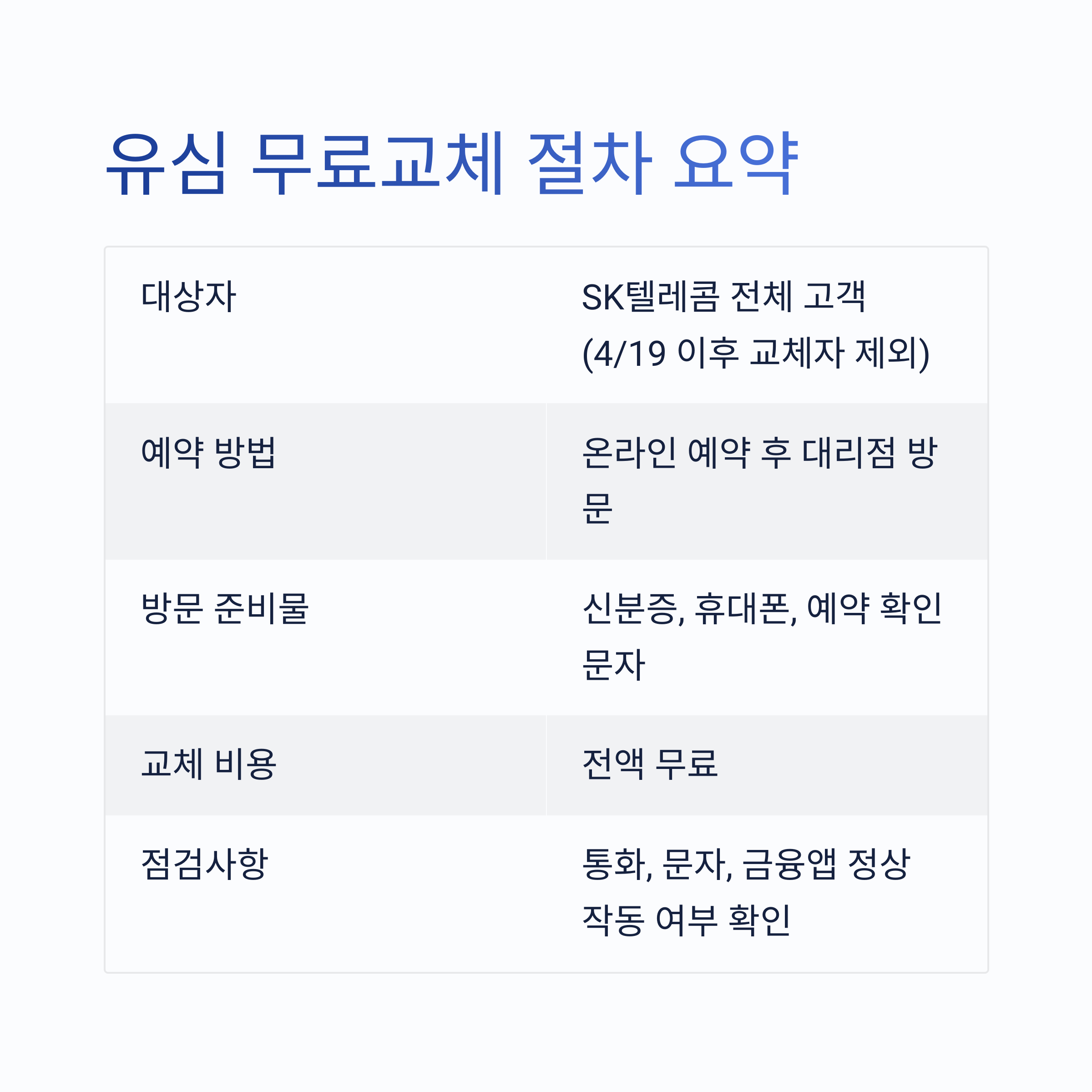 표로 보는 유심 무료교체 절차 요약