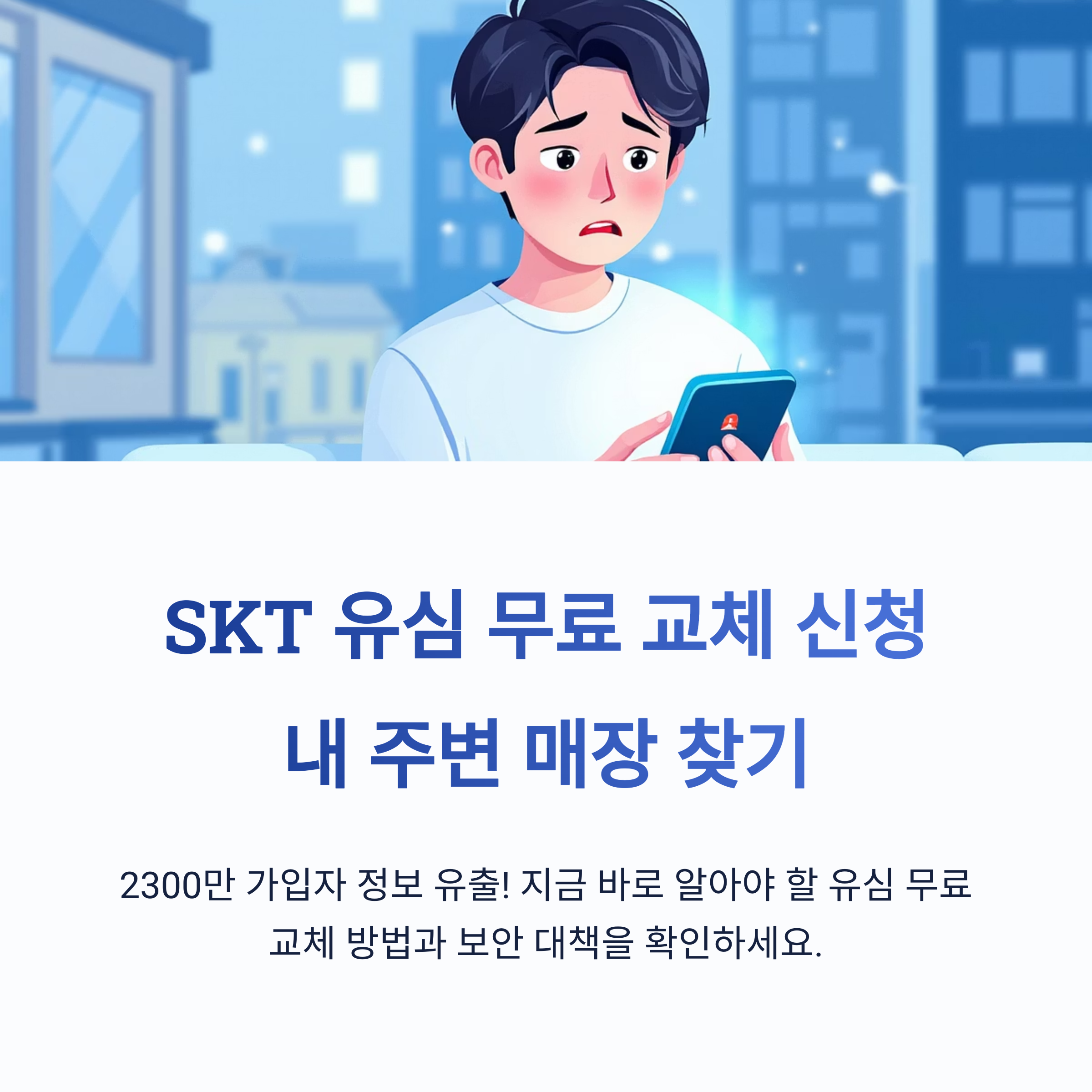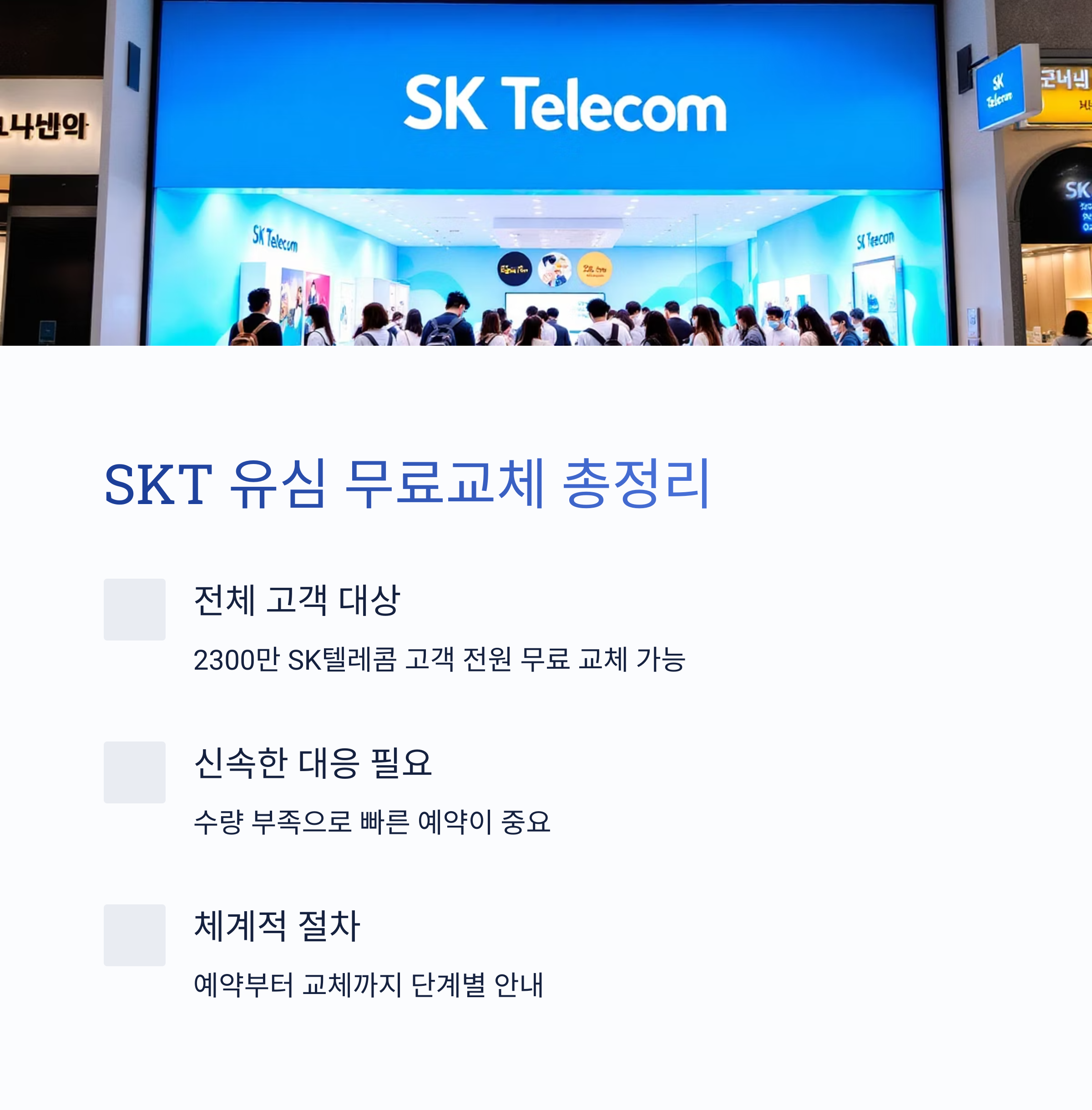 SK텔레콤은 2300만 전체 고객을 대상으로 유심 무료 교체를 시행하고 있습니다.